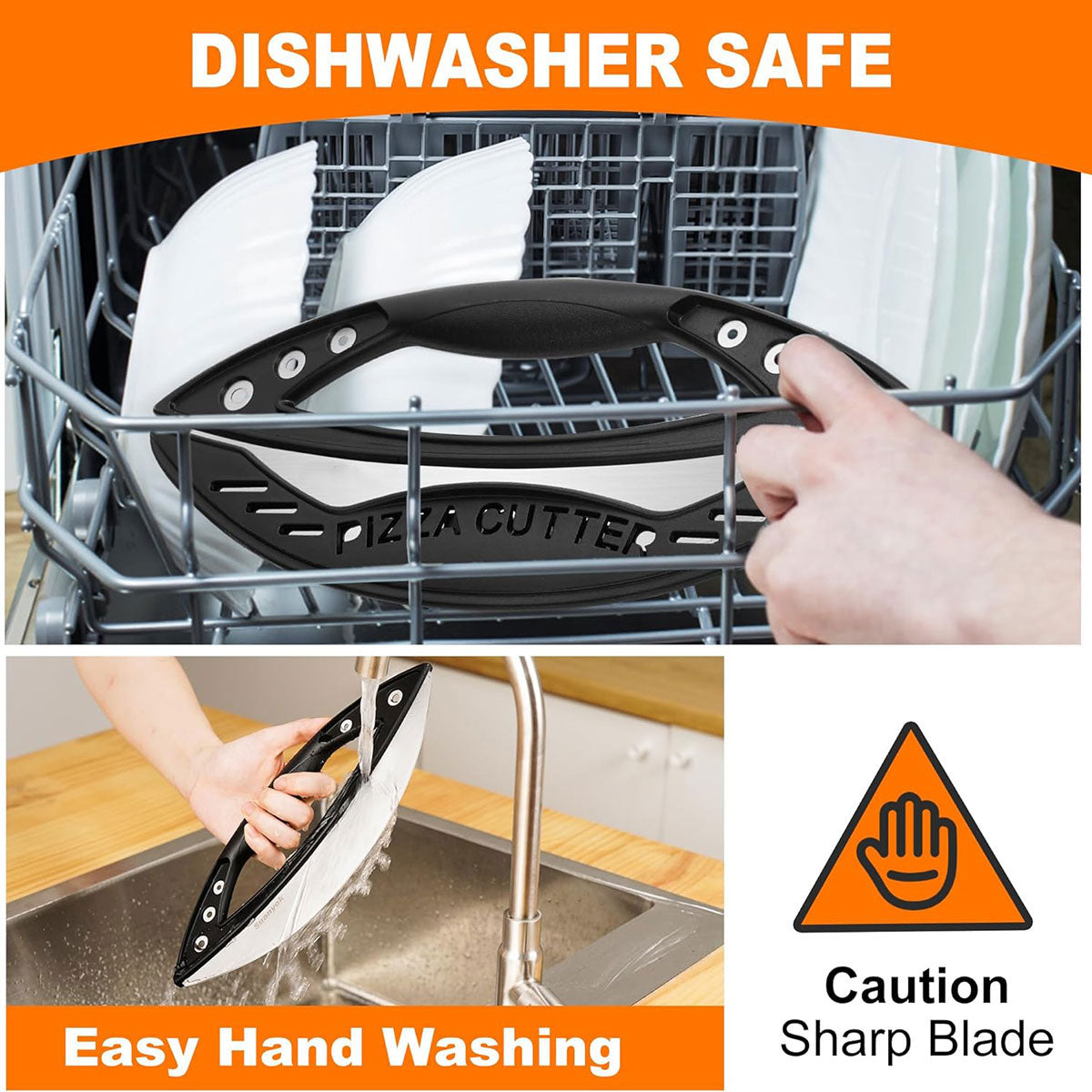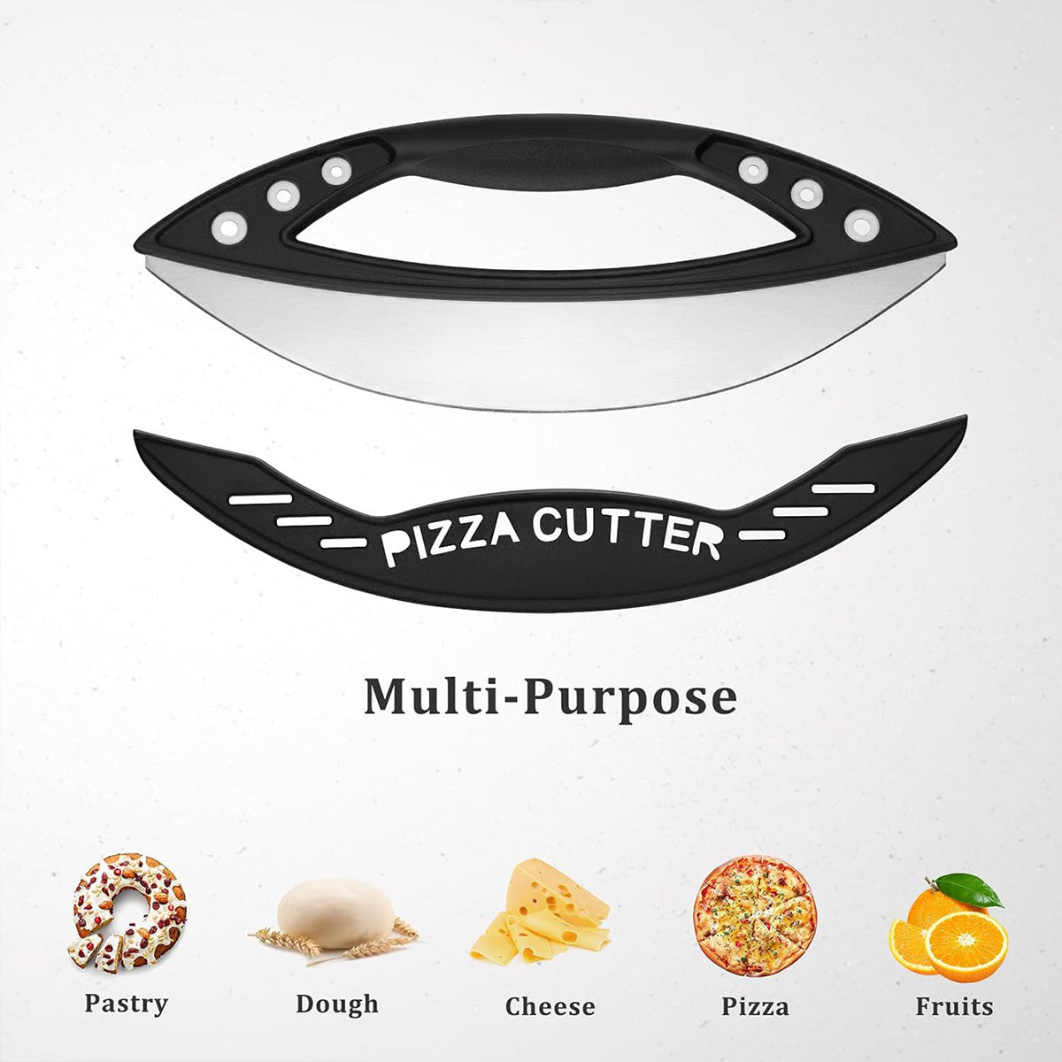 Pizza Cutter Food-Grade Stainless Steel with Protective Cover Black
