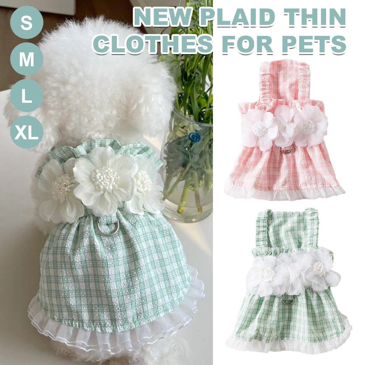 Plaid Pet Dress with Traction Buckle Slip Outing Clothes for Small Medium Pet