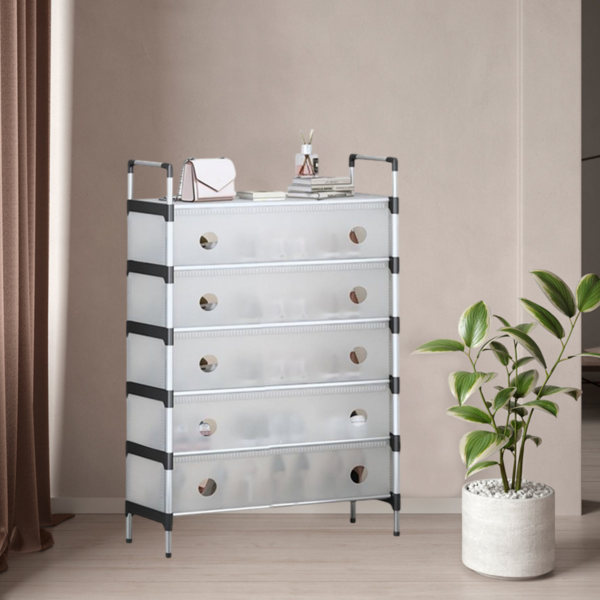 Plastic Dustproof Shoe Rack Storage Cabinet Small Size Space Saving Organizer