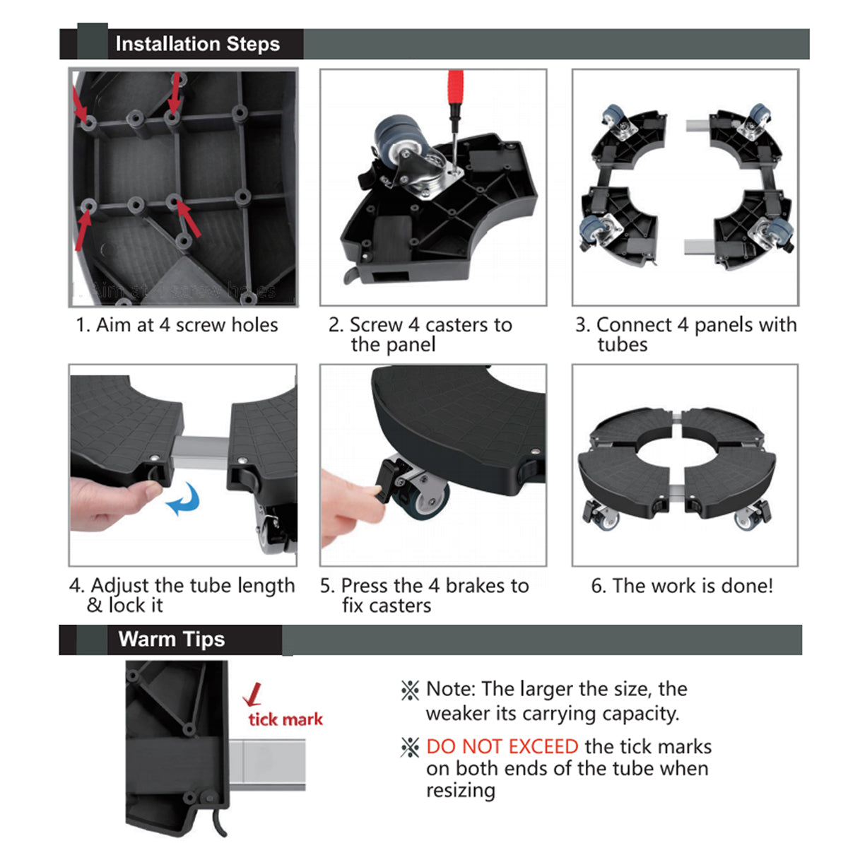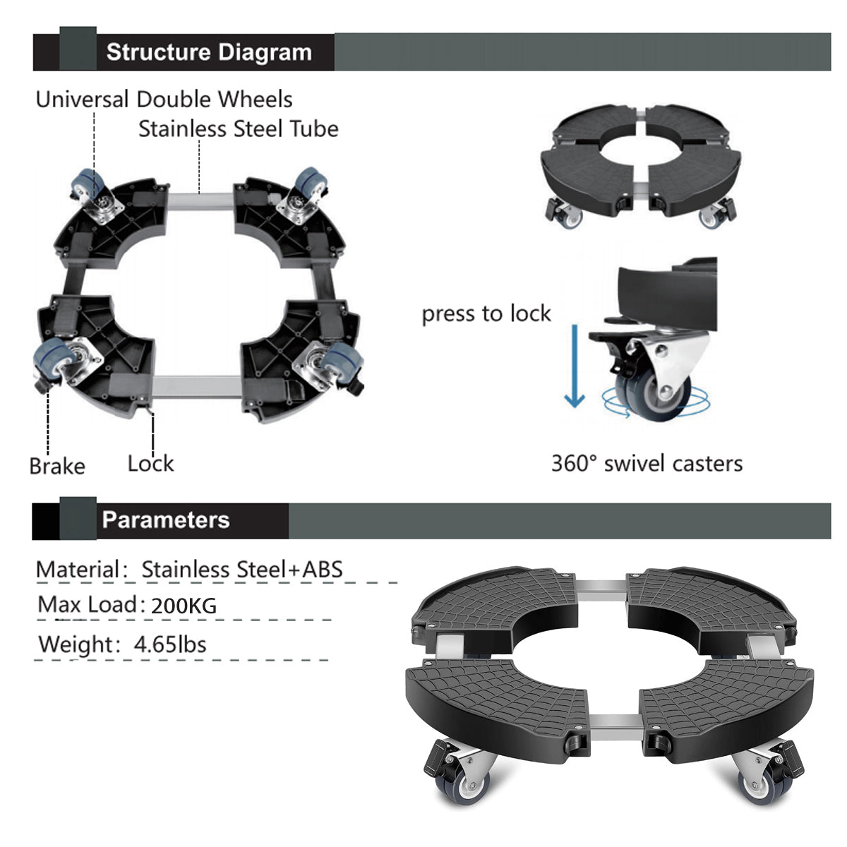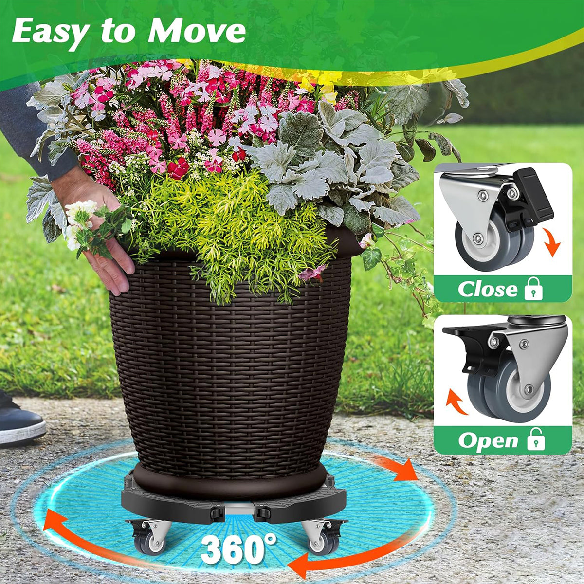 Plastic Round Retractable Plant Pot Tray Stand With Wheels Movable Durable