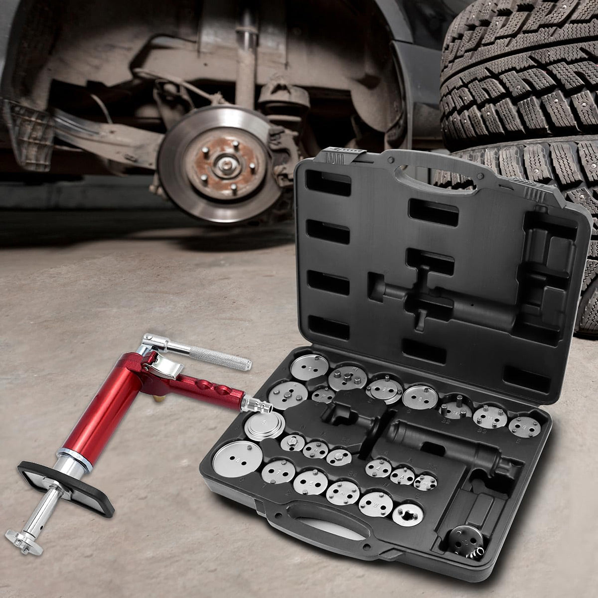 Pneumatic Brake Caliper Tool Set 24pcs Air Operated Compressor Kit Garage Duty