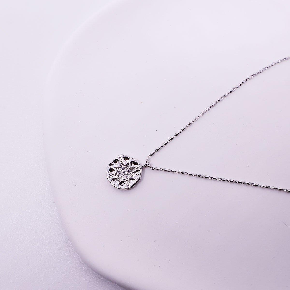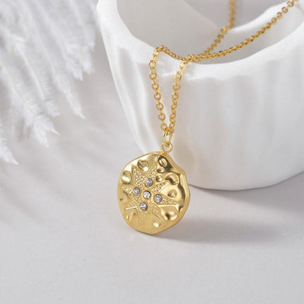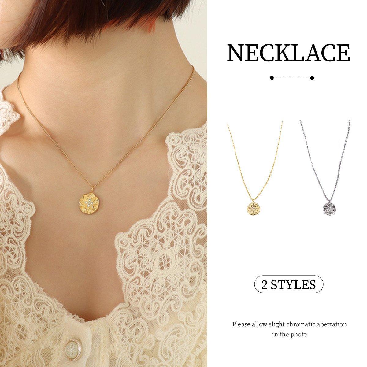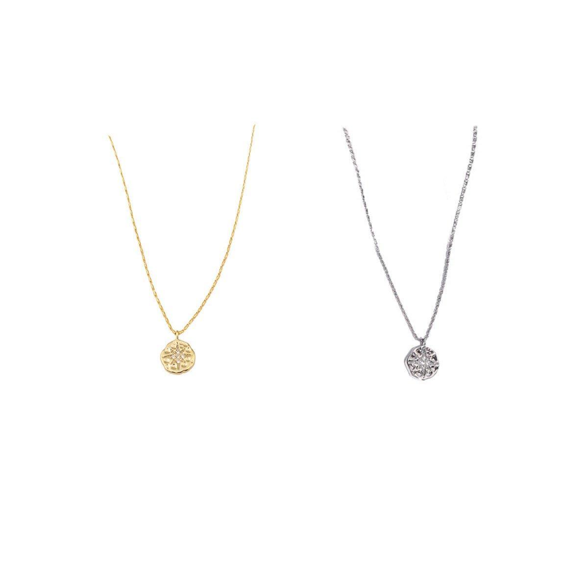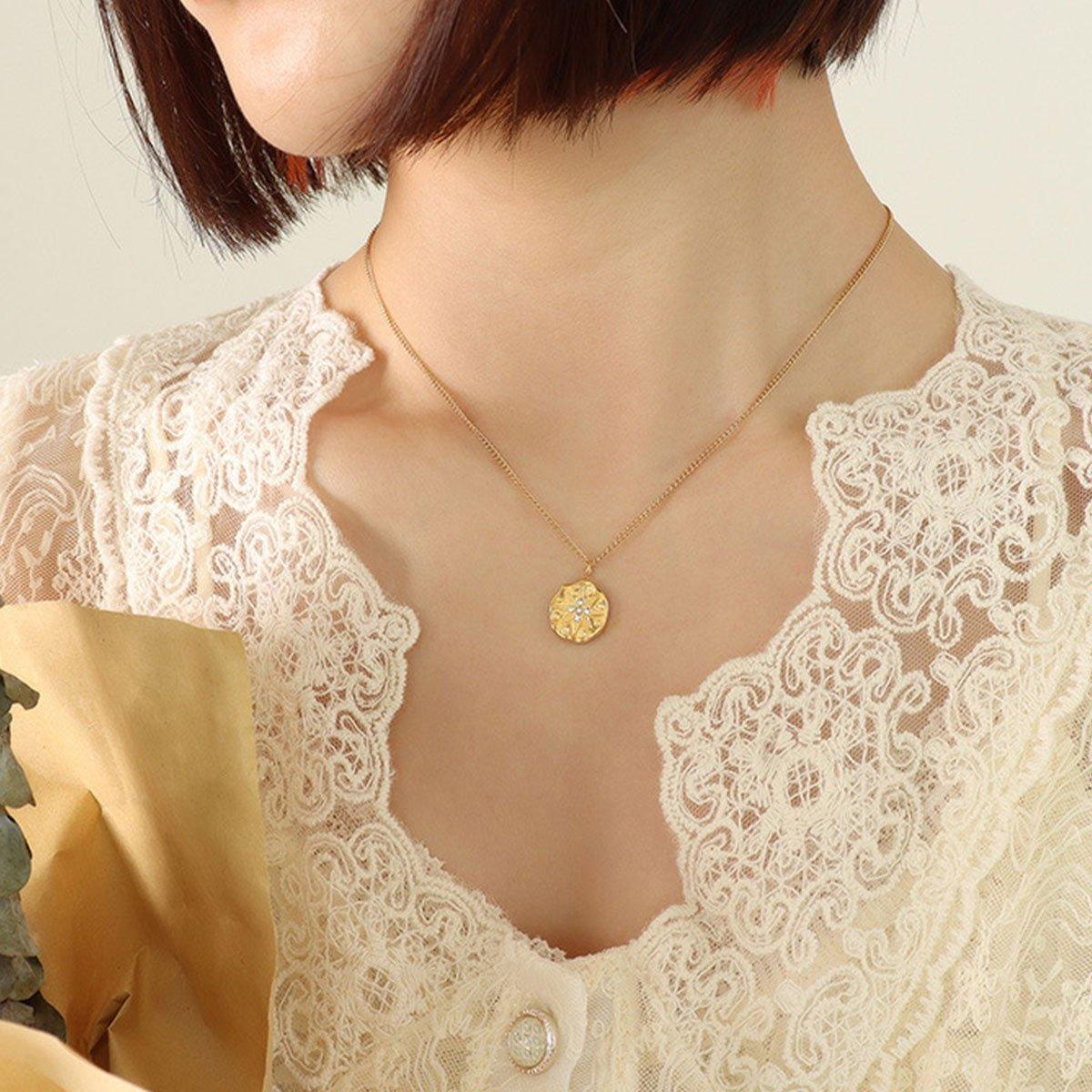 Polaris Coin Button Pendant Necklace Octet Star Vintage Celestial Jewelry