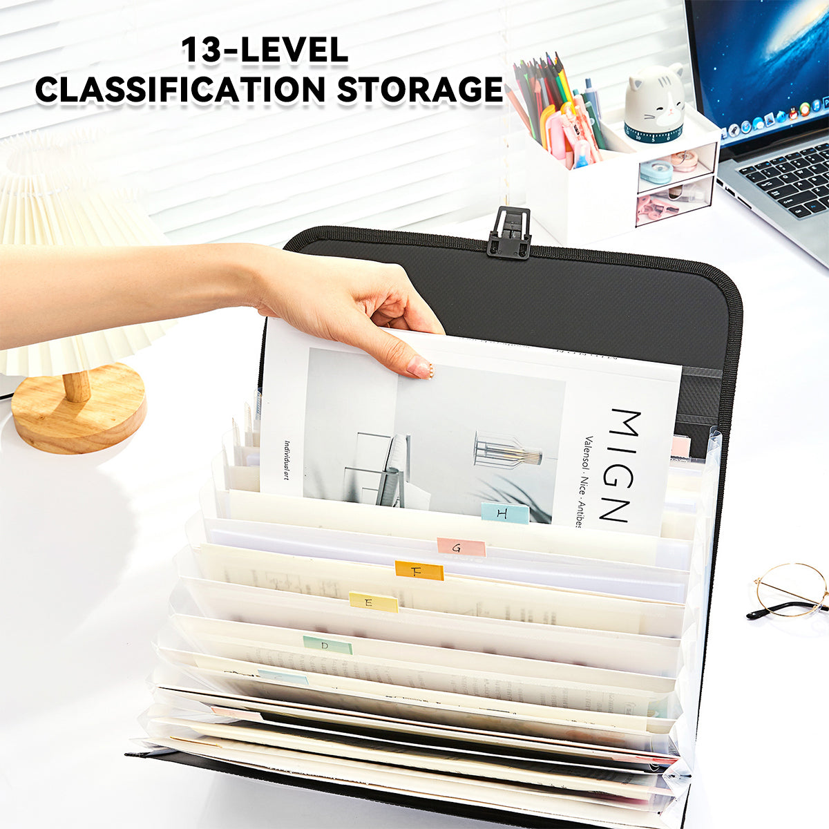 Portable 13 Layer File Bag Organizer for Office School Document Storage Handheld