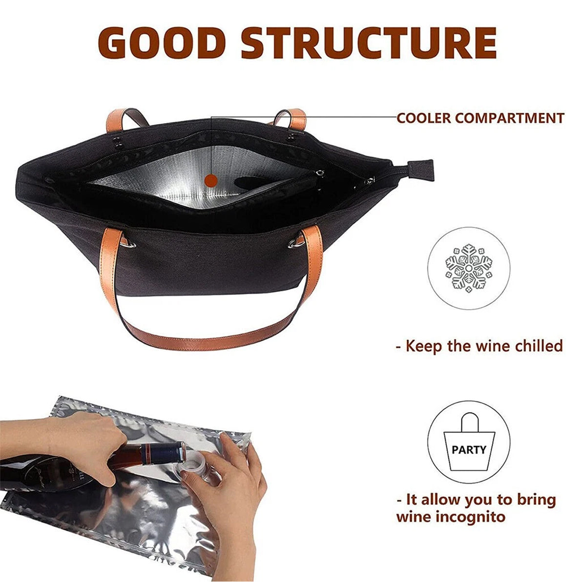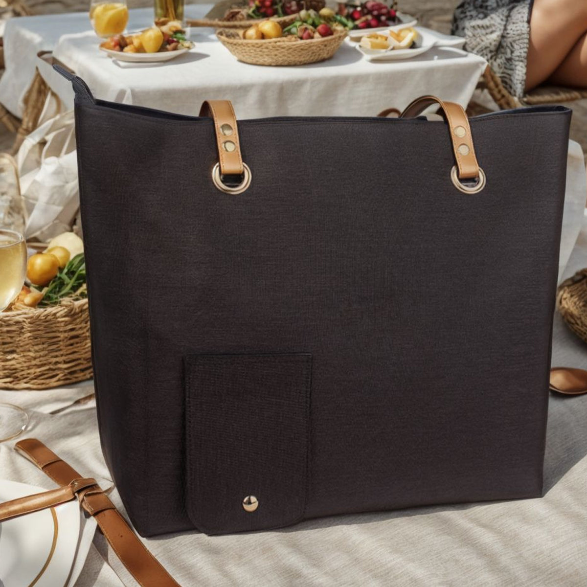 Portable Beach Handheld Wine Bag Durable Easy to Clean for Travel Picnic Use