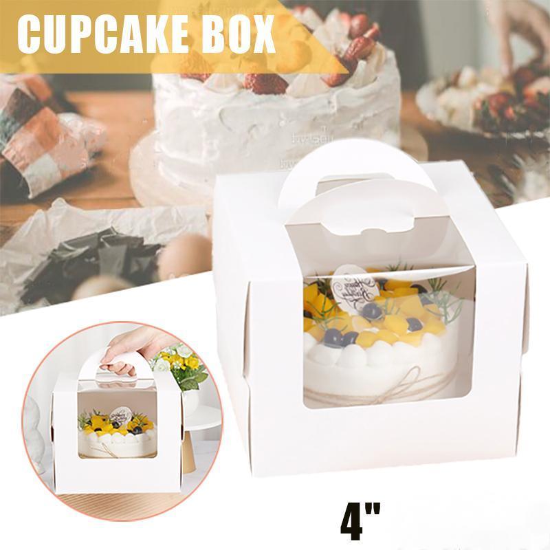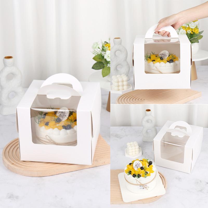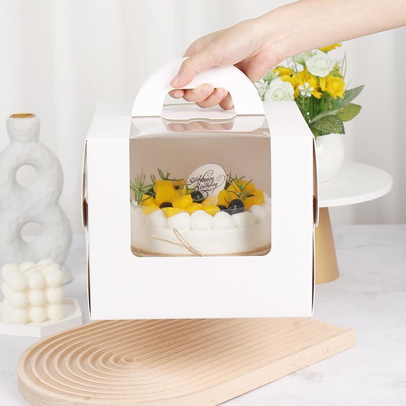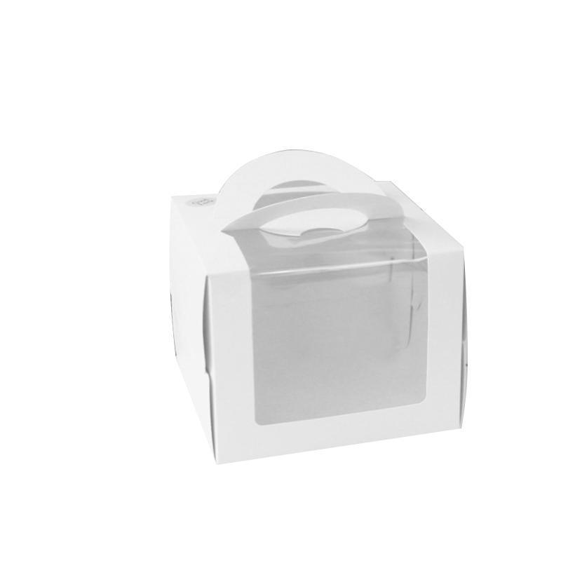 Portable Cake Boxes White Paper Display Window Packing Case Party with Handle 4inch