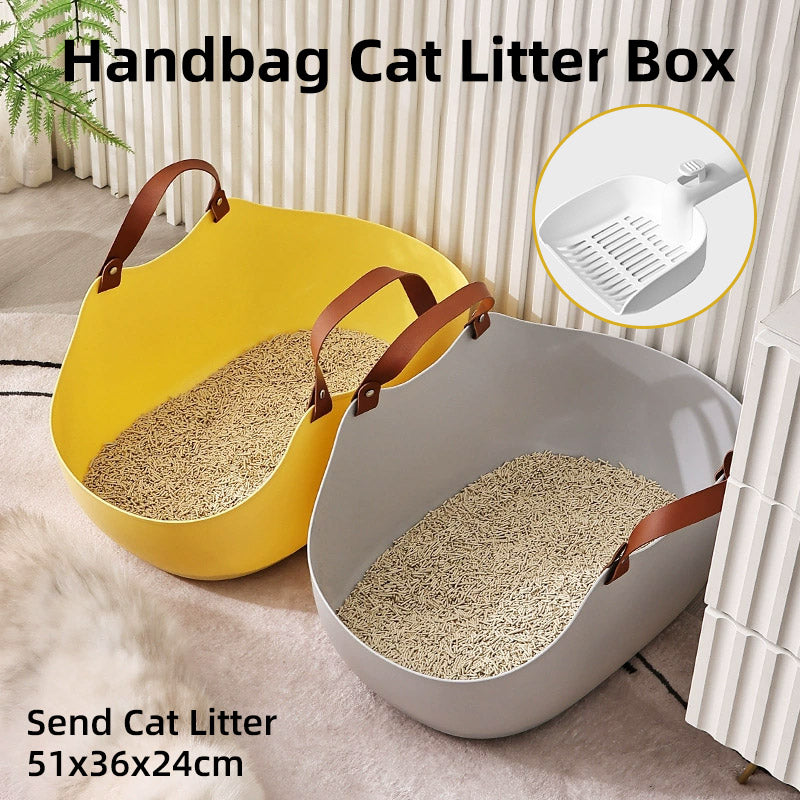 Portable Cat Litter Box Large Handbag Style Pet Toilet Travel Tray Enclosed Use