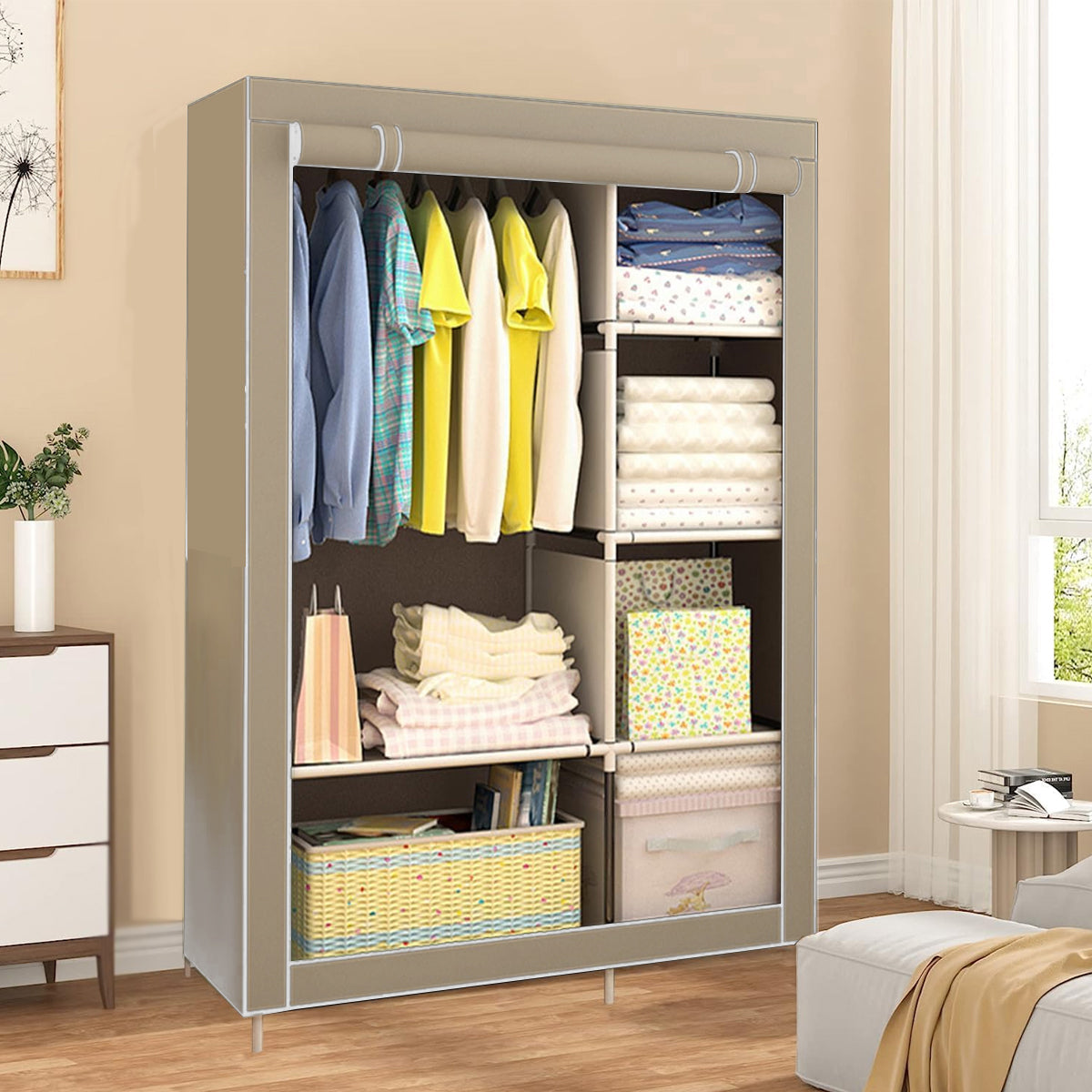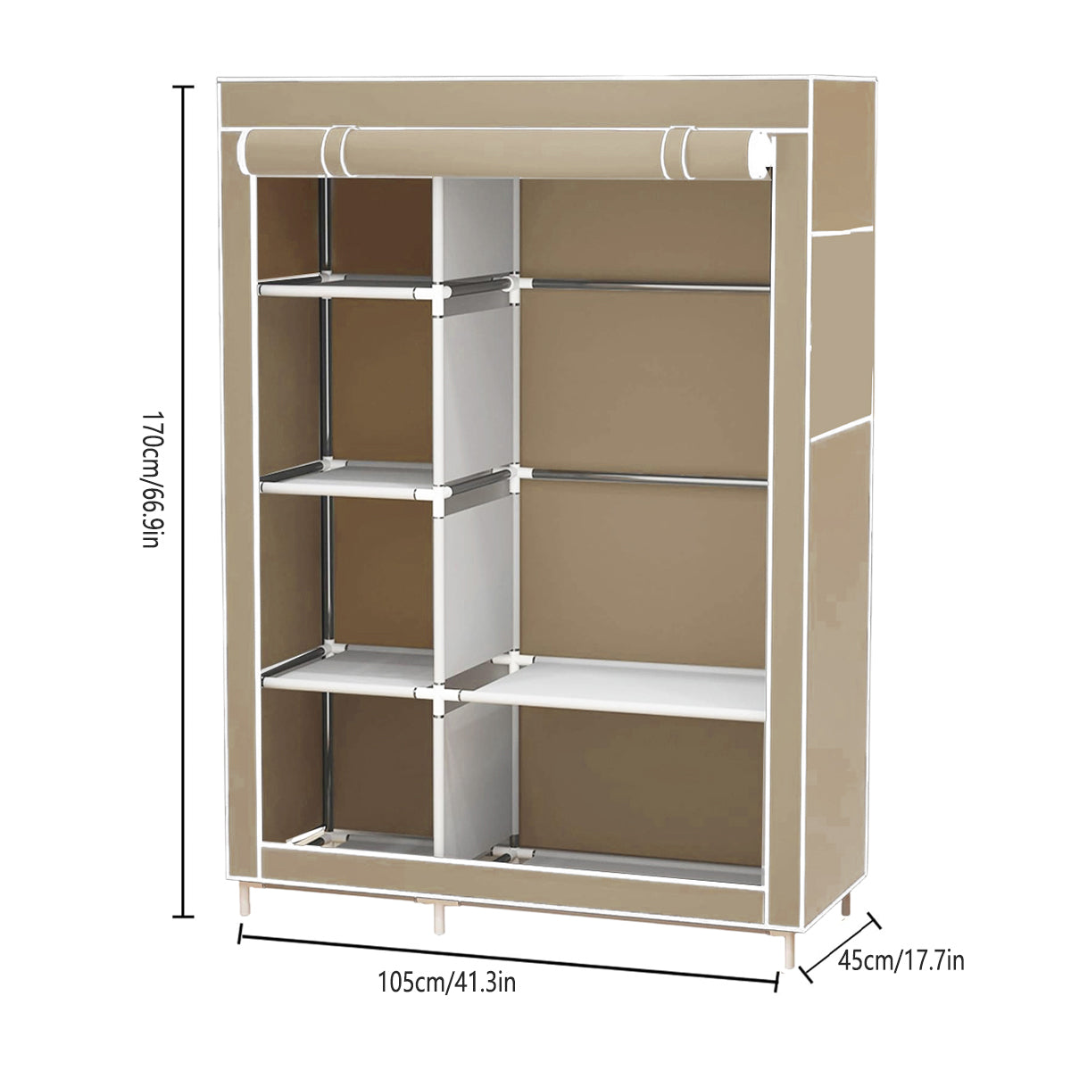 Portable Clothes Storage Cabinet Wardrobe Organizer Unit with Shelf Closet