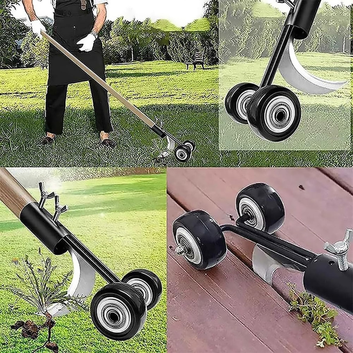 Portable Hook Weed Remover Tool Garden Patio Weeding Tool Weed Puller With Wheel