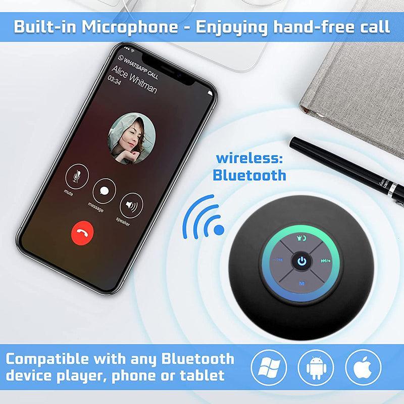 Waterproof Bluetooth Shower Speaker with LED Light FM Radio and Suction Cup