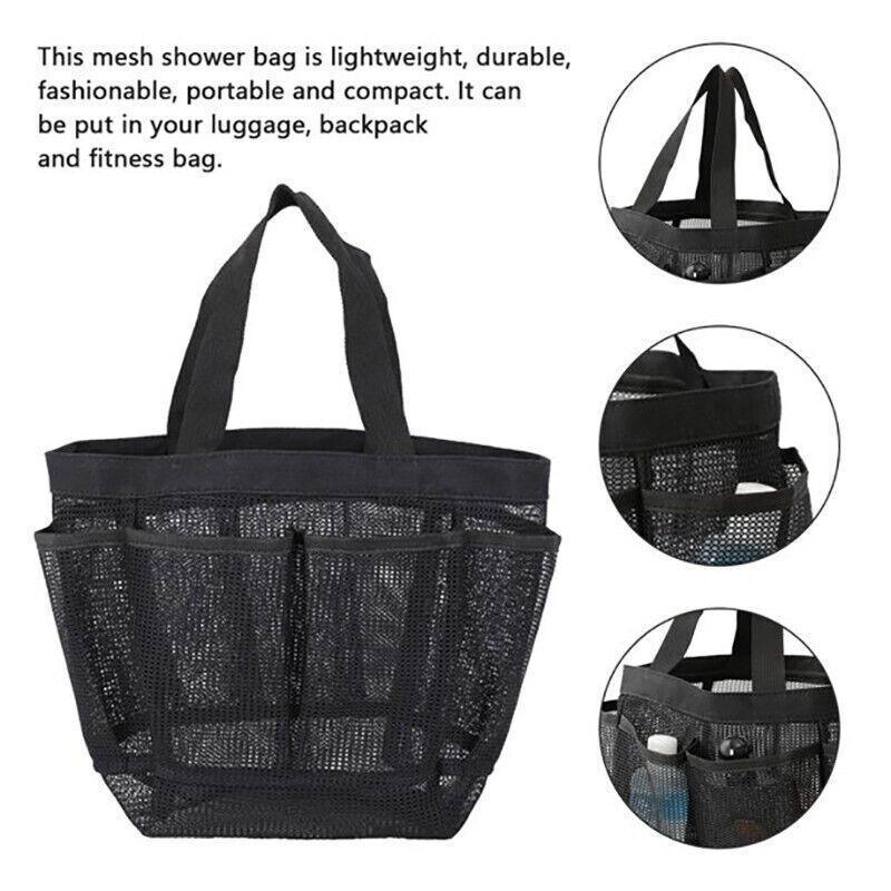 Portable Mesh Shower Caddy Bag with 8 Pockets Bathroom Tote for Gym Travel Beach