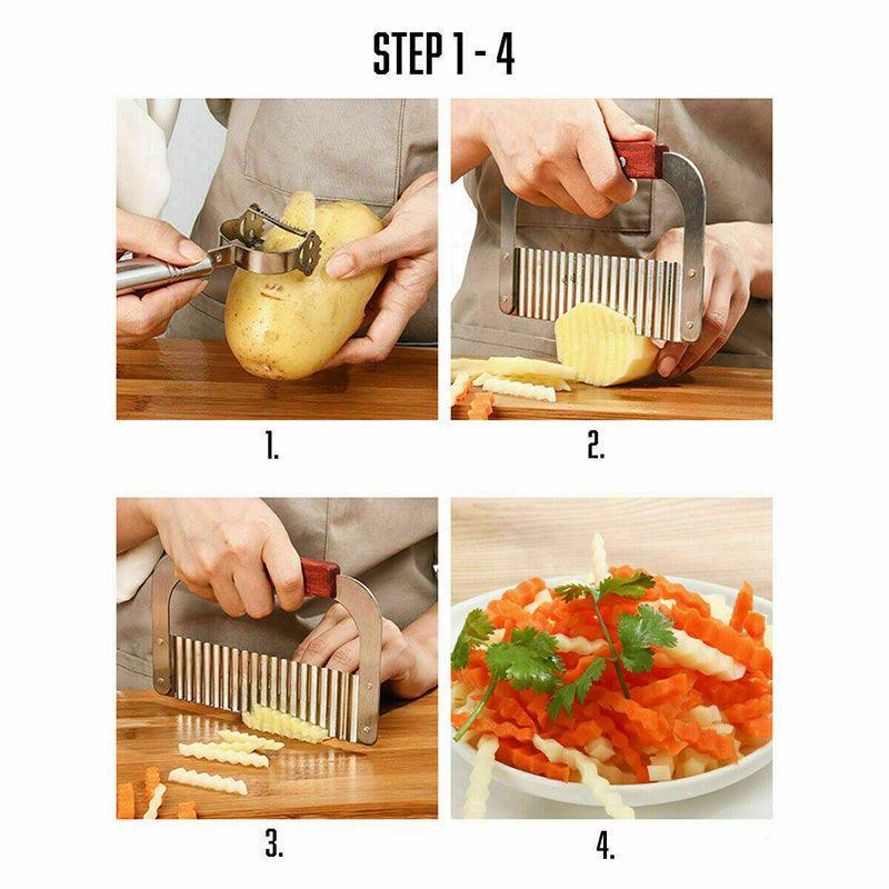 Potato Crinkle Cutter Dough Wavy Slicer Steel Kitchen Vegetable Chip Blade Knife