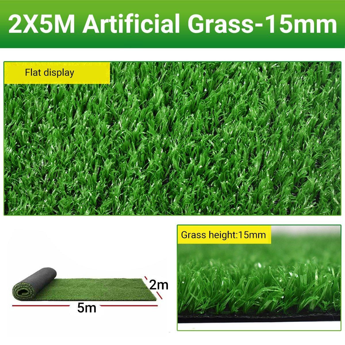 Primeturf Artificial Grass Synthetic Fake 2m x 5m Turf Plant Plastic Lawn 15mm