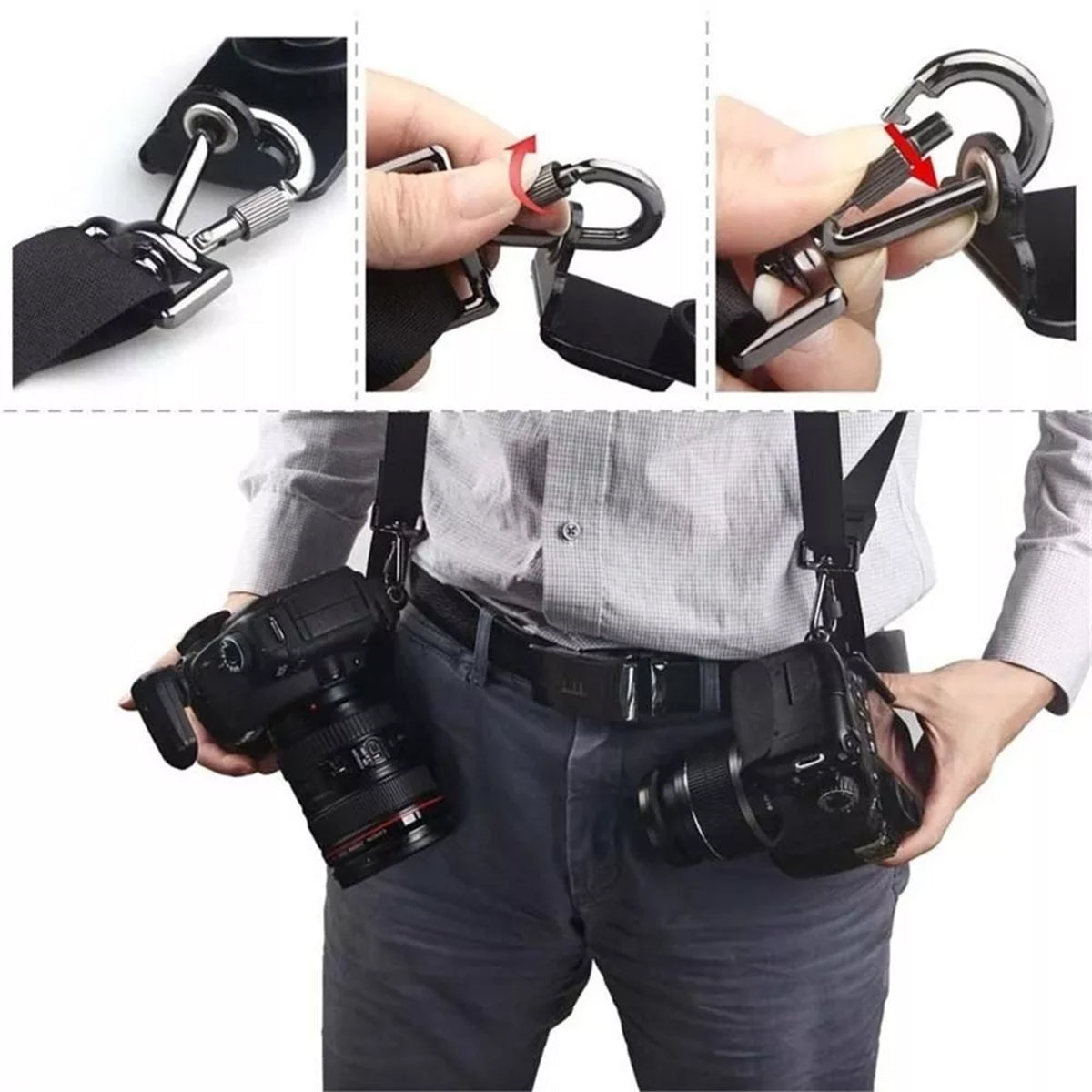 Professional Dual DSLR Camera Harness Adjustable Shoulder Sling Strap Belt