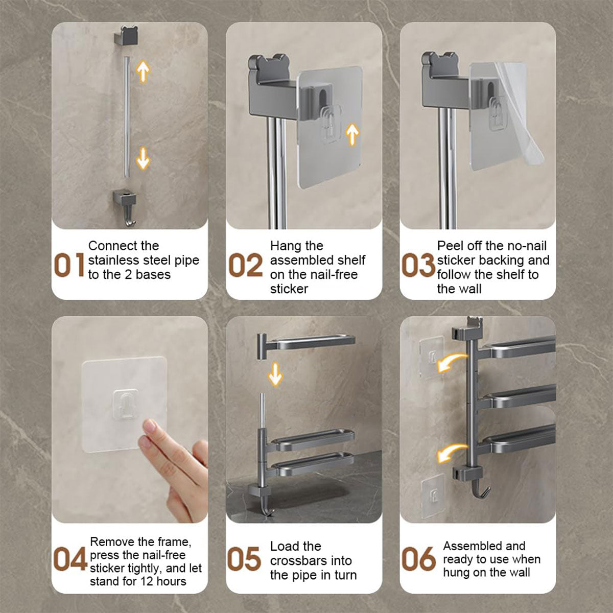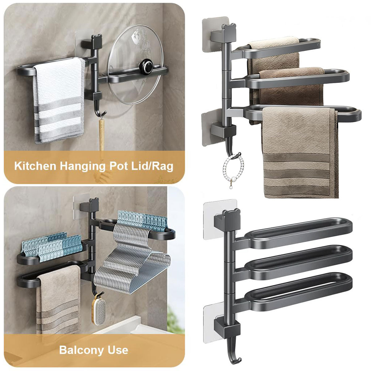 Punch-free Towel Rack Basic Model Rotatable Multi-rod Bathroom Toilet Towel Hang
