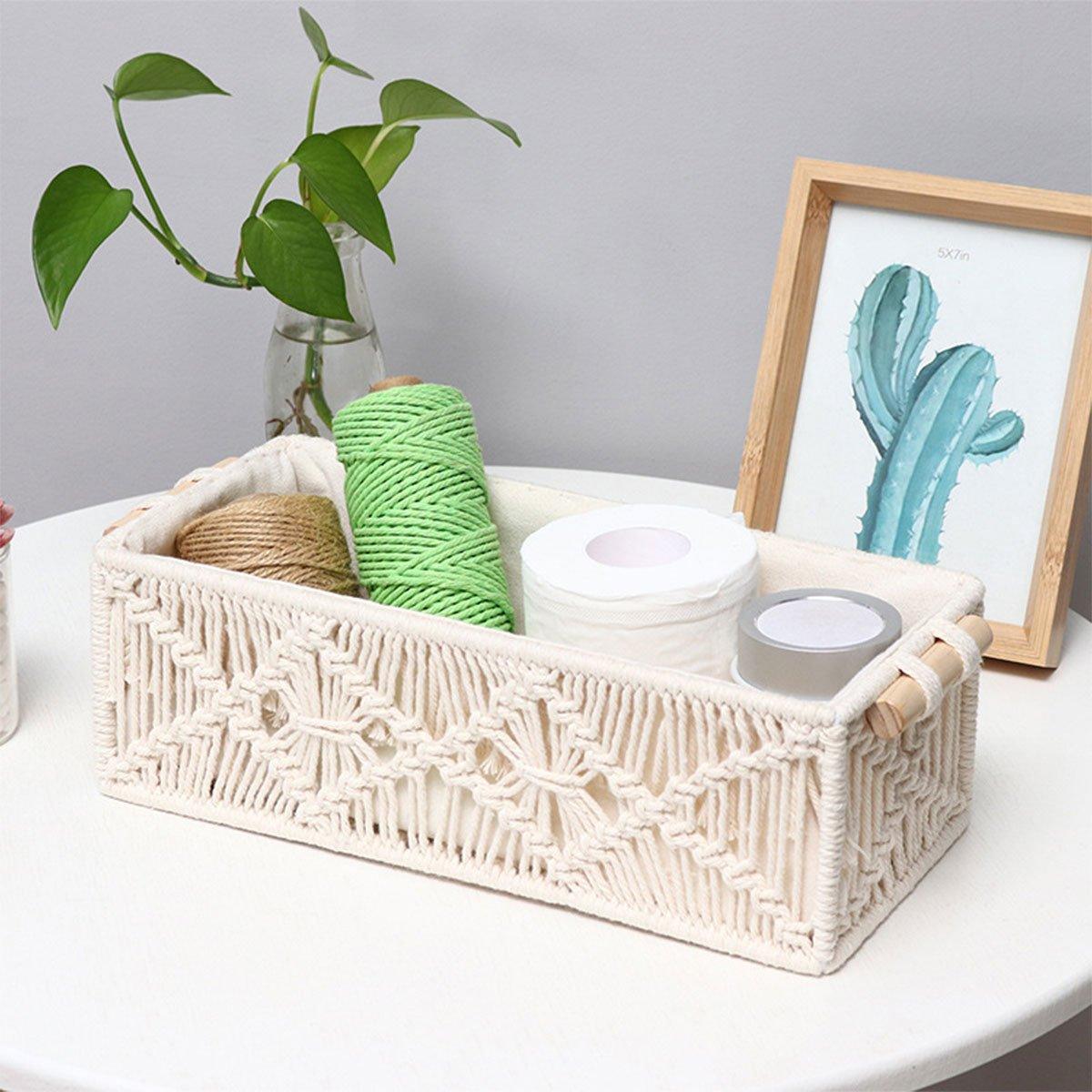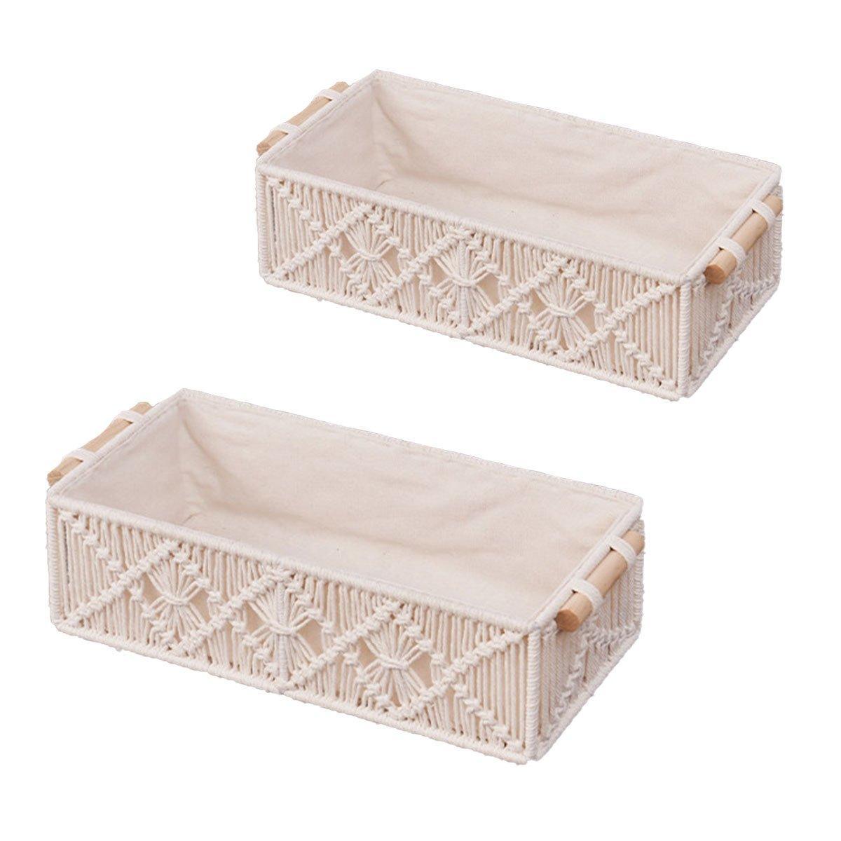 Pure Hand-Woven Square Storage Basket Desktop Organizer for Cosmetics Snacks