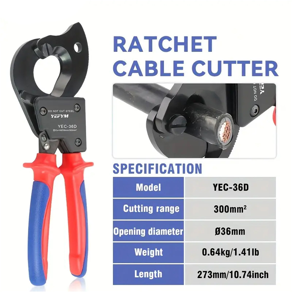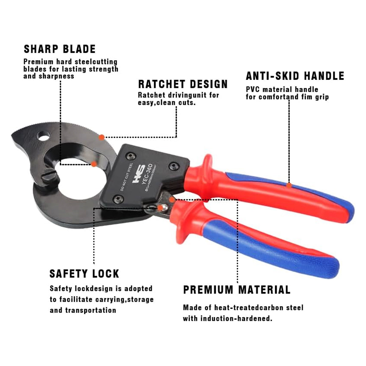 Ratchet Cable Cutter Carbon Steel Sharp Blade For Cutting Steel Wire Rope Cable