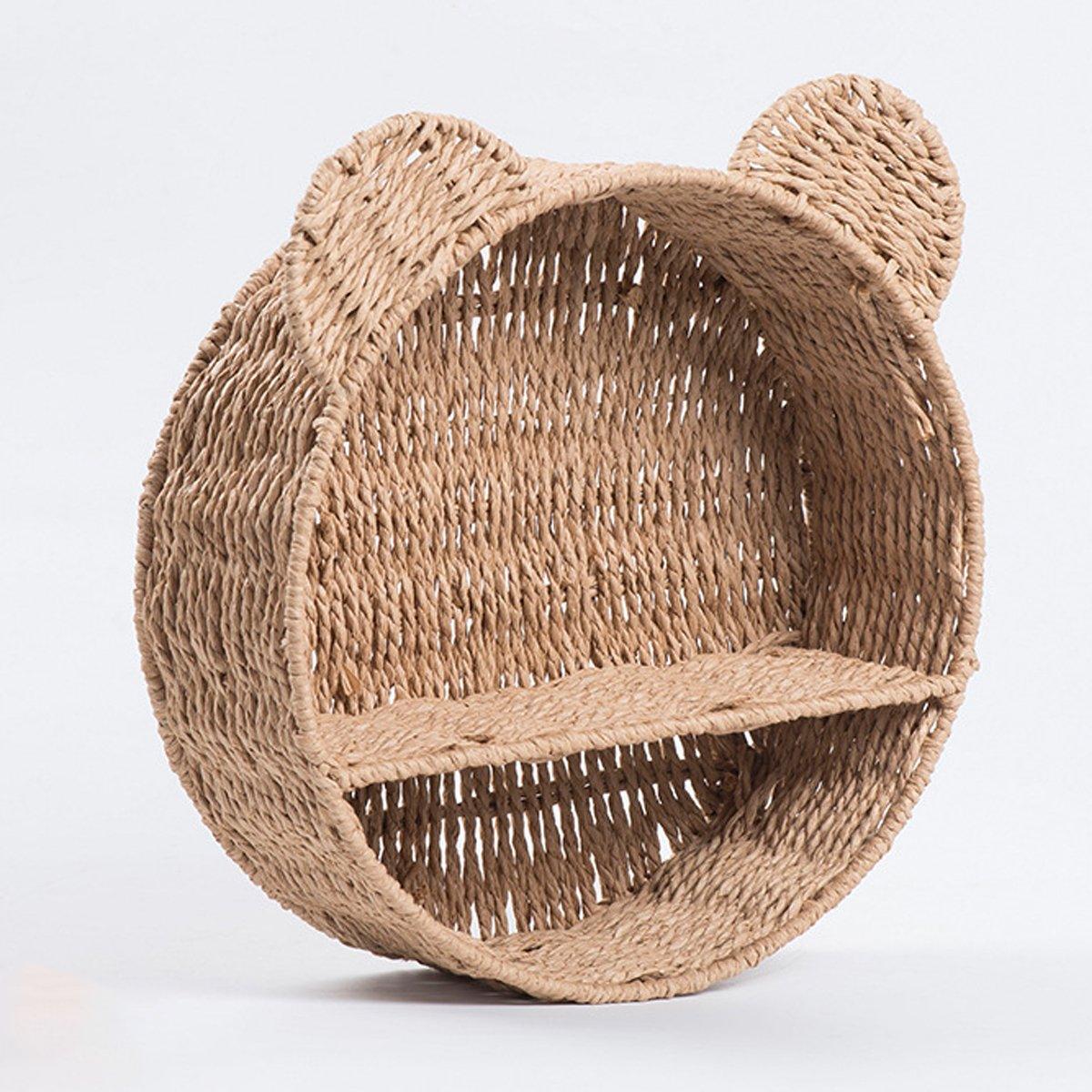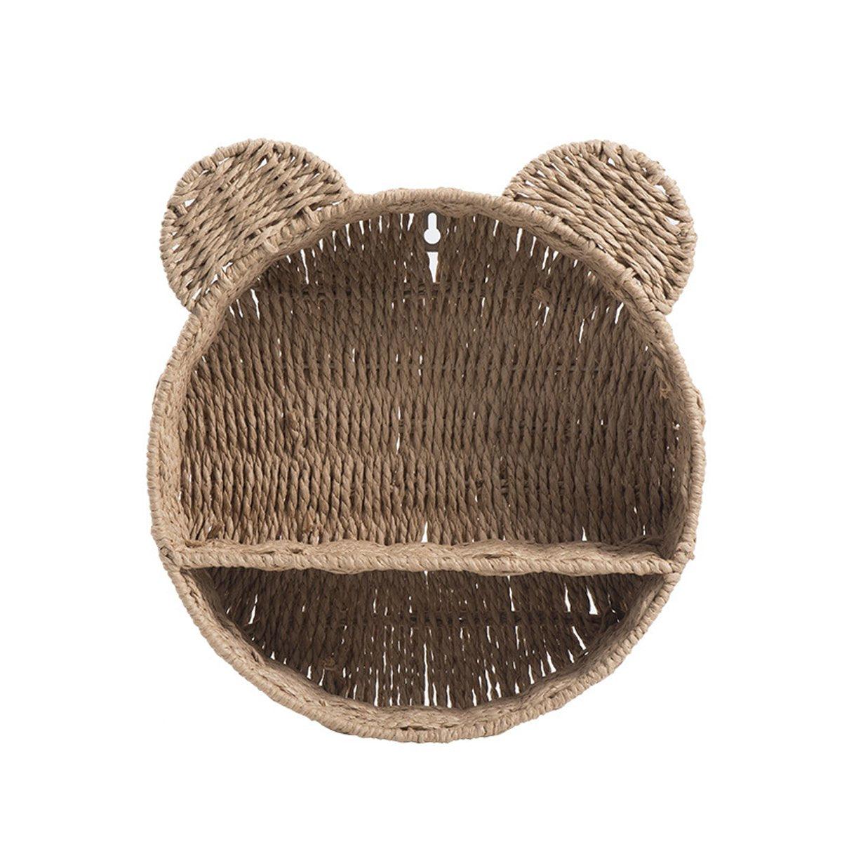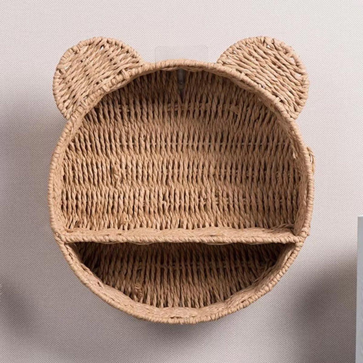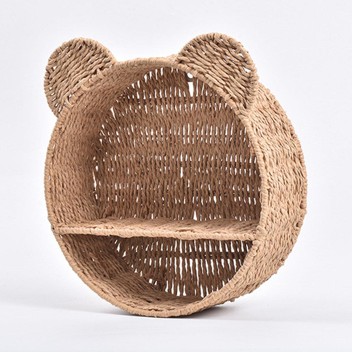 Rattan Storage Basket Wall Mounted Rack Round Plant Display Stand Organizer