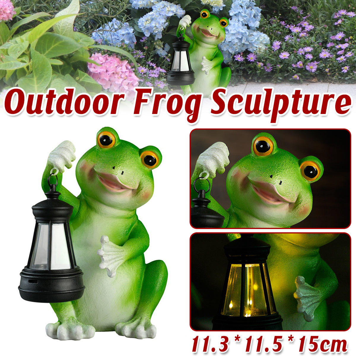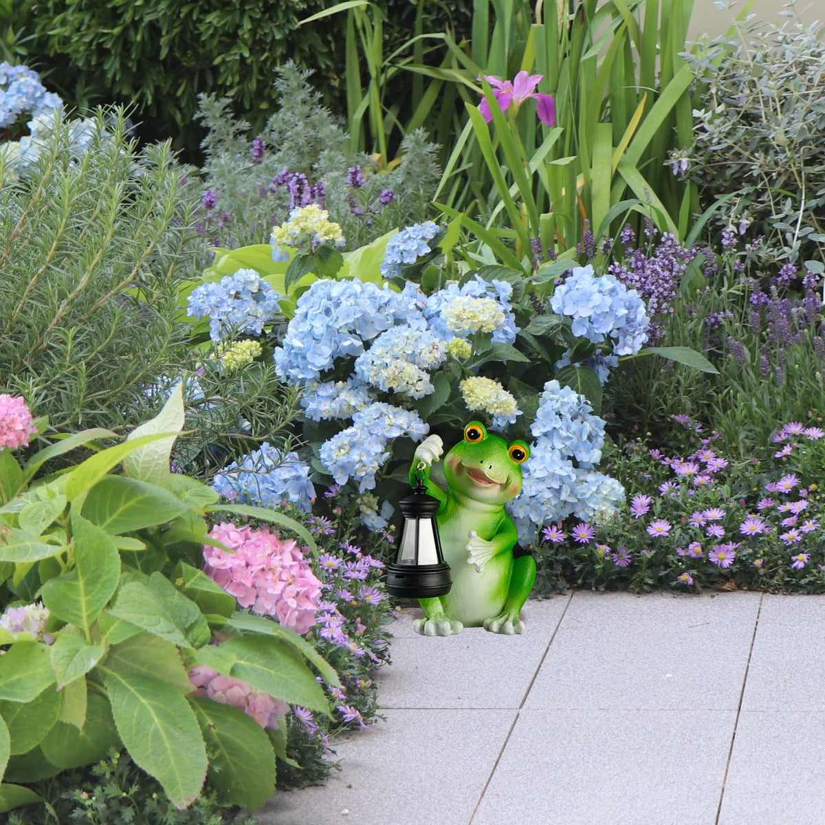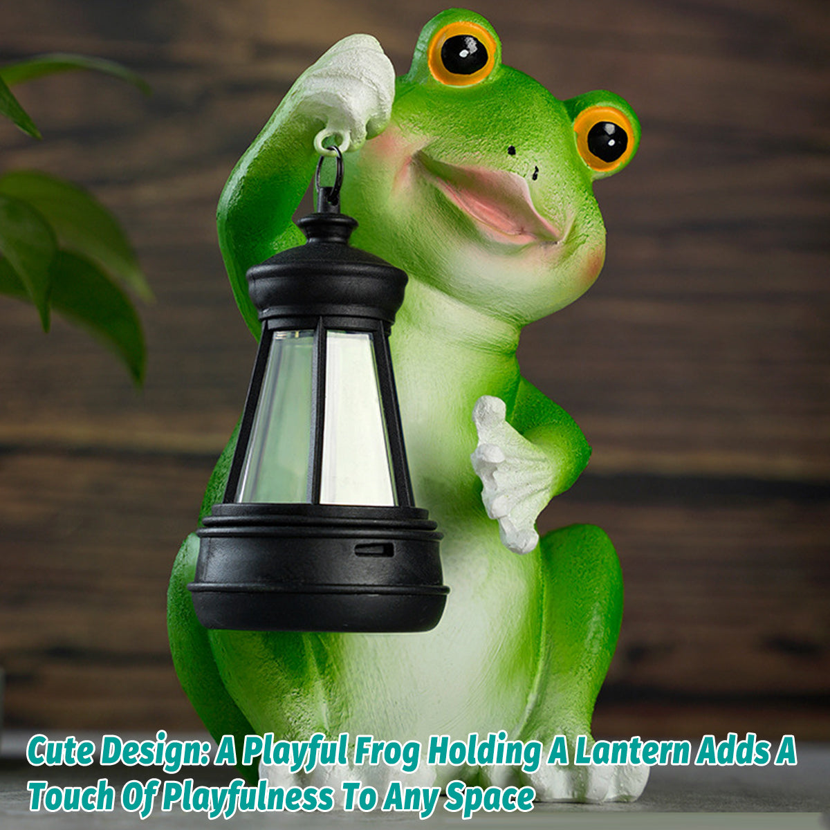 Realistic Frog Resin Sculpture with Solar Lantern for Garden and Yard