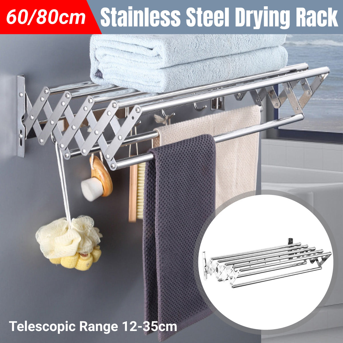 Retractable Stainless Steel Clothes Drying Rack Towel Holder Anti Rust Wall Mounted