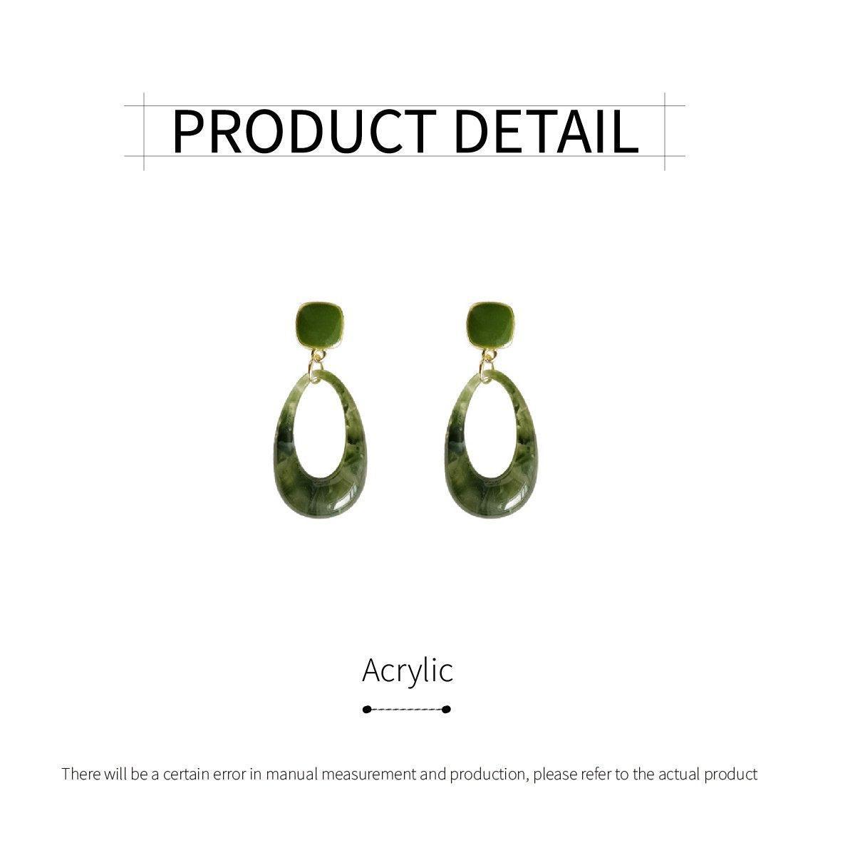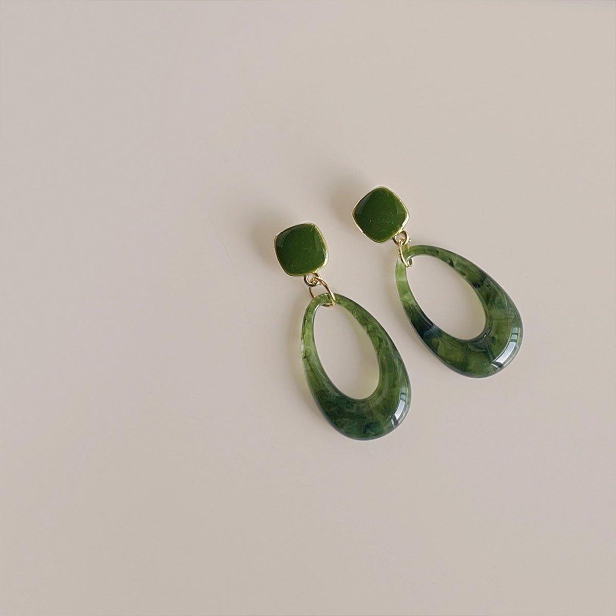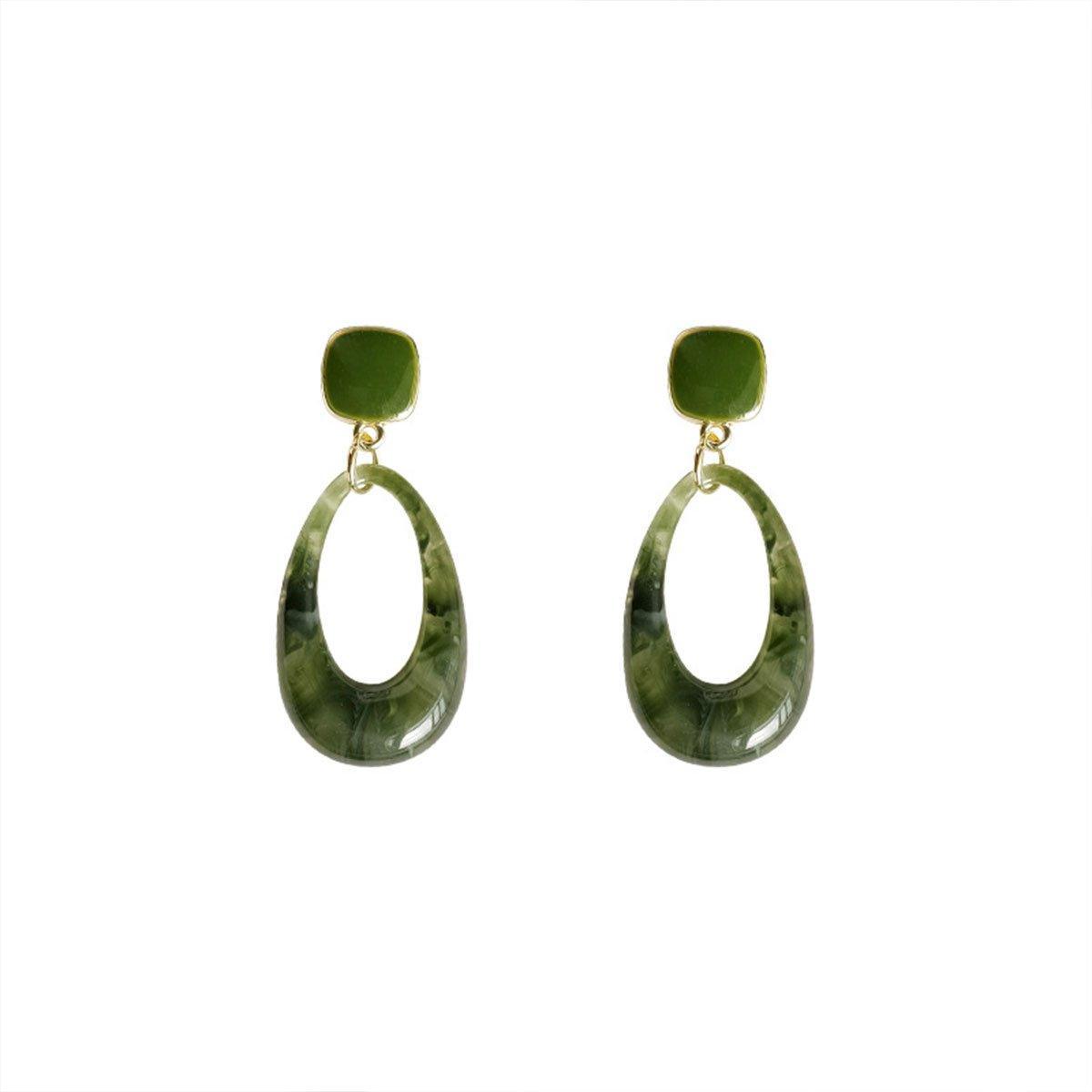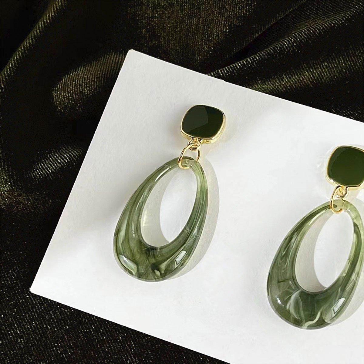 Retro Glossy Green Resin Earrings Women Fashion Round Dangle Jewelry Gift