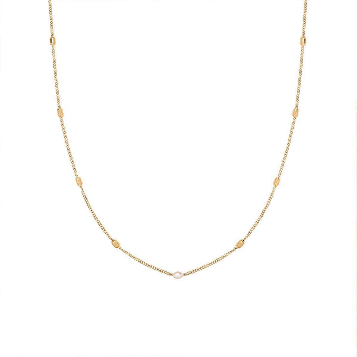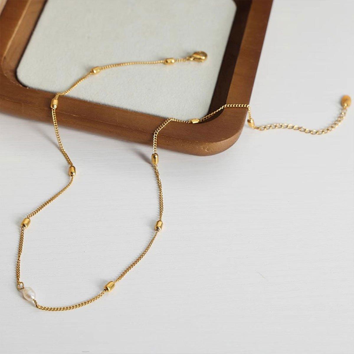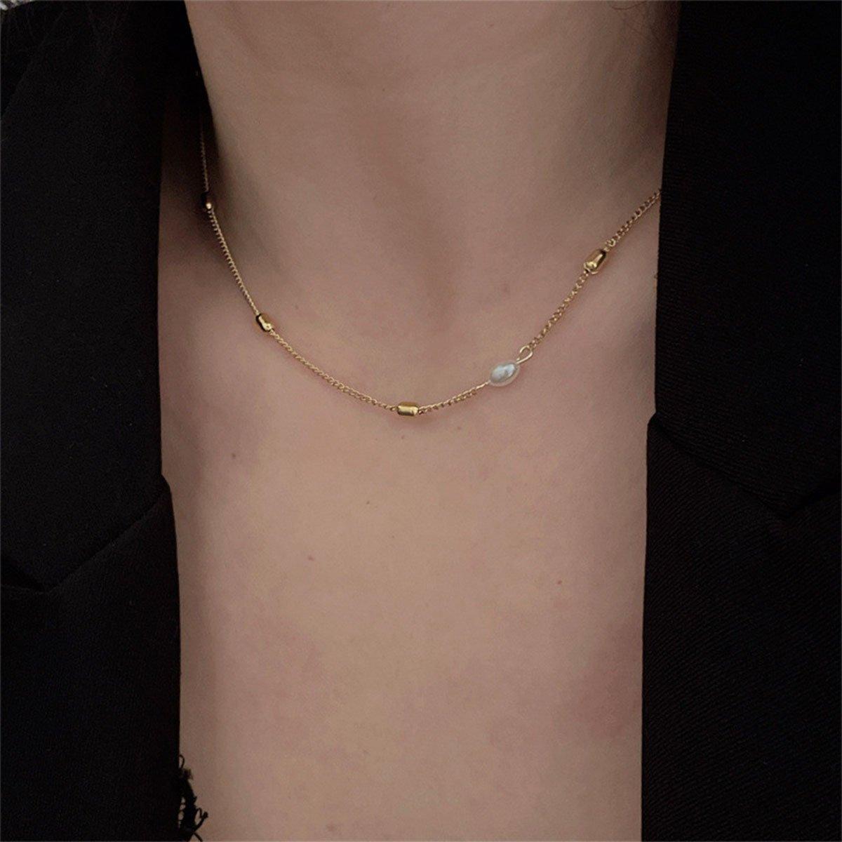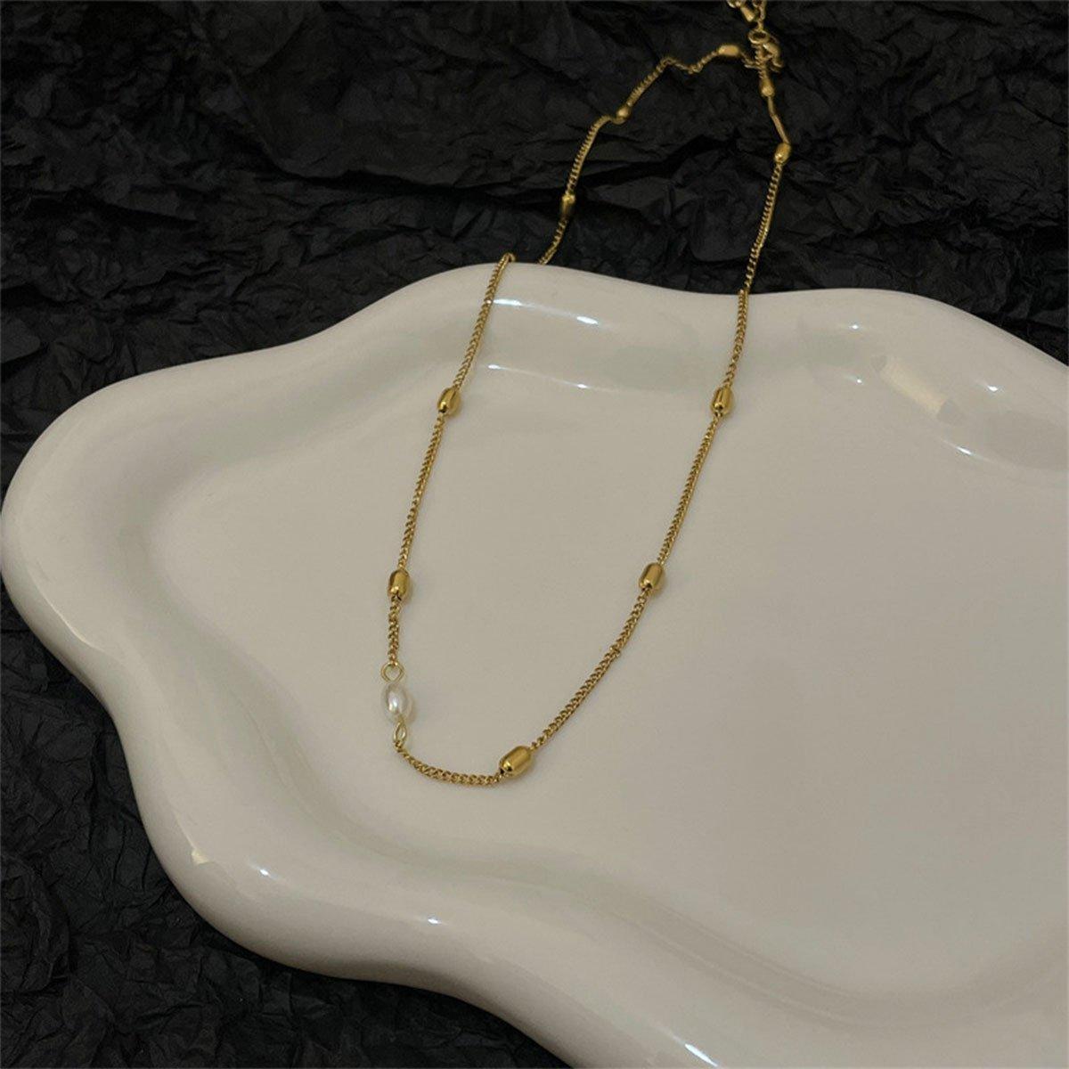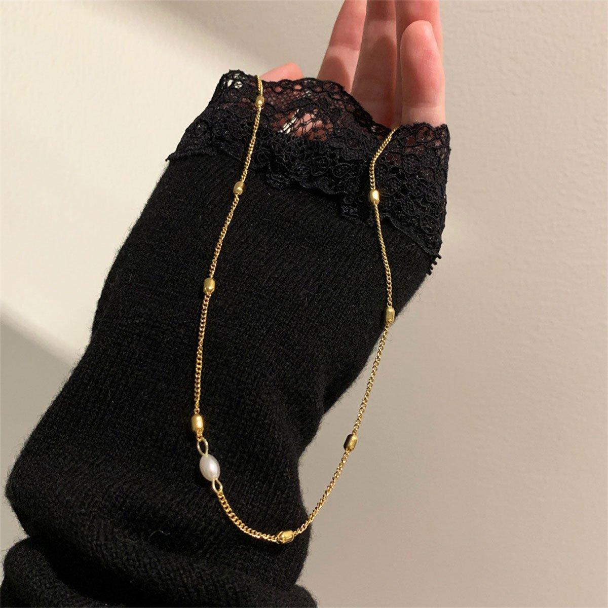 Rice Pearl Titanium Steel Necklace Women Pendant Retro Clavicle Sweater Chain
