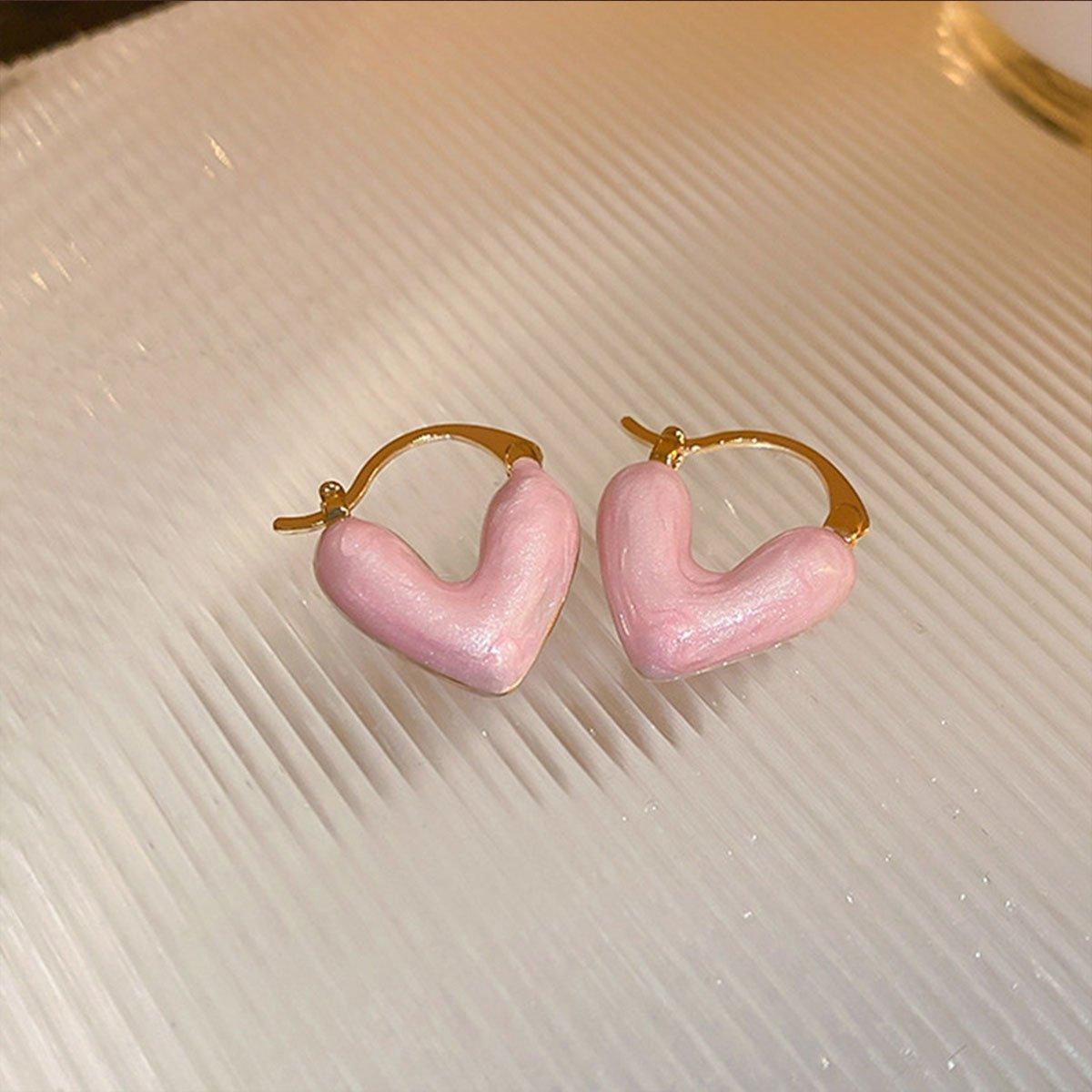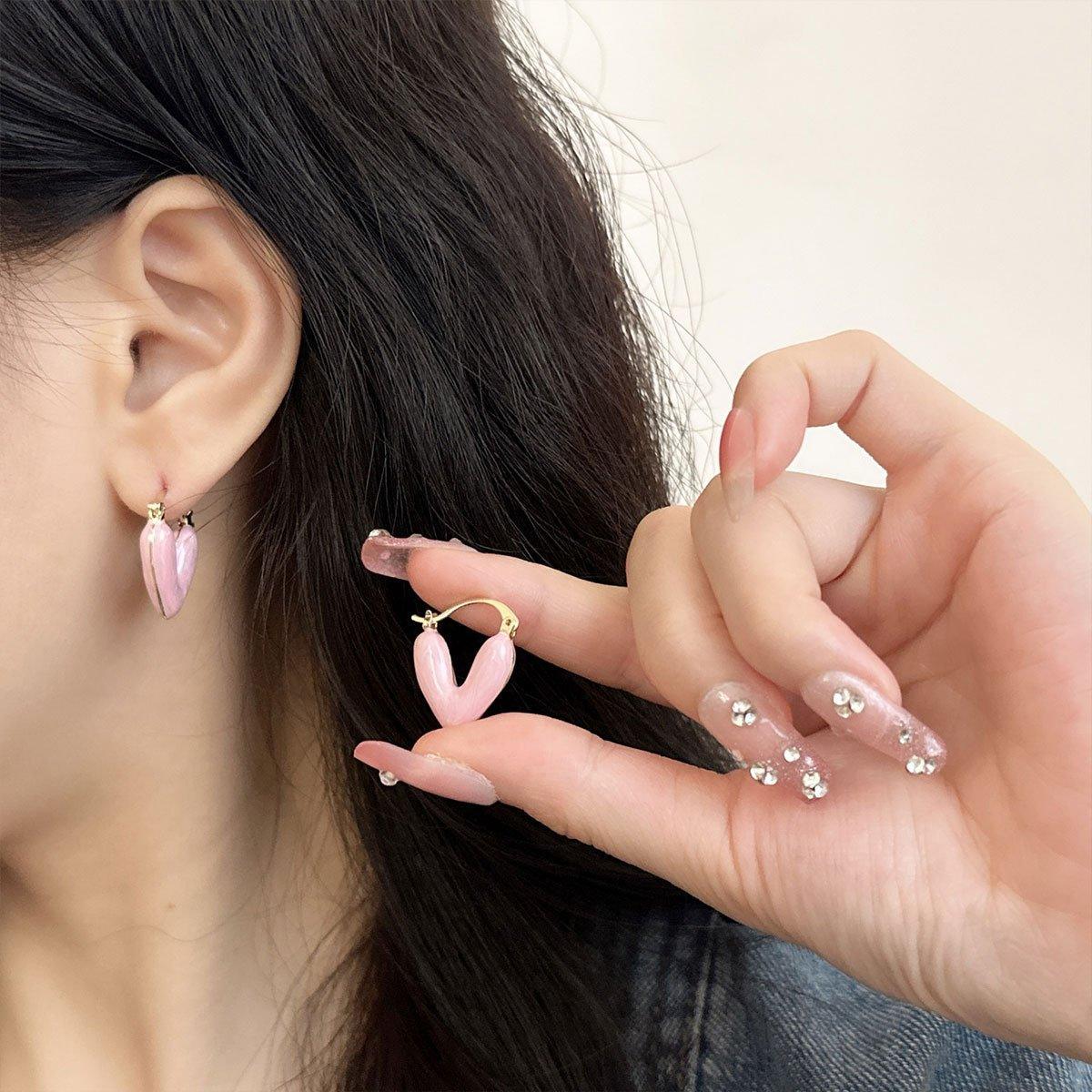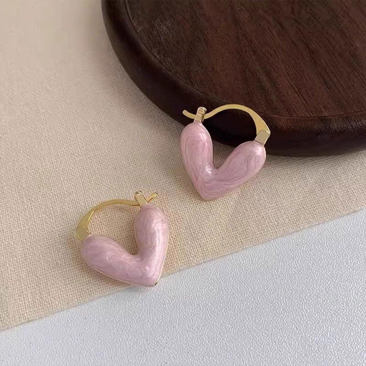 Romantic Pink Dripping Heart Dangle Earrings Women Girls Fashion Jewelry