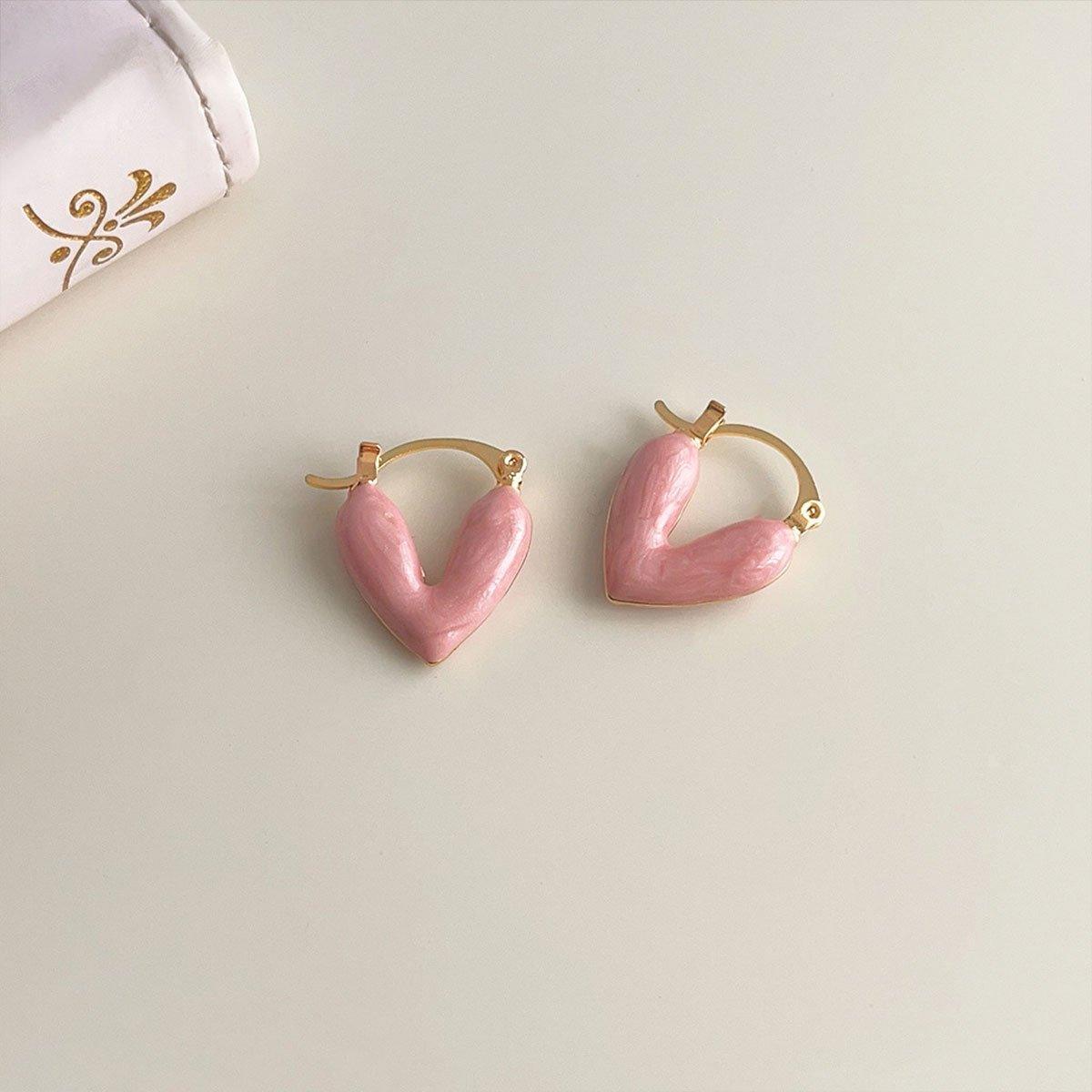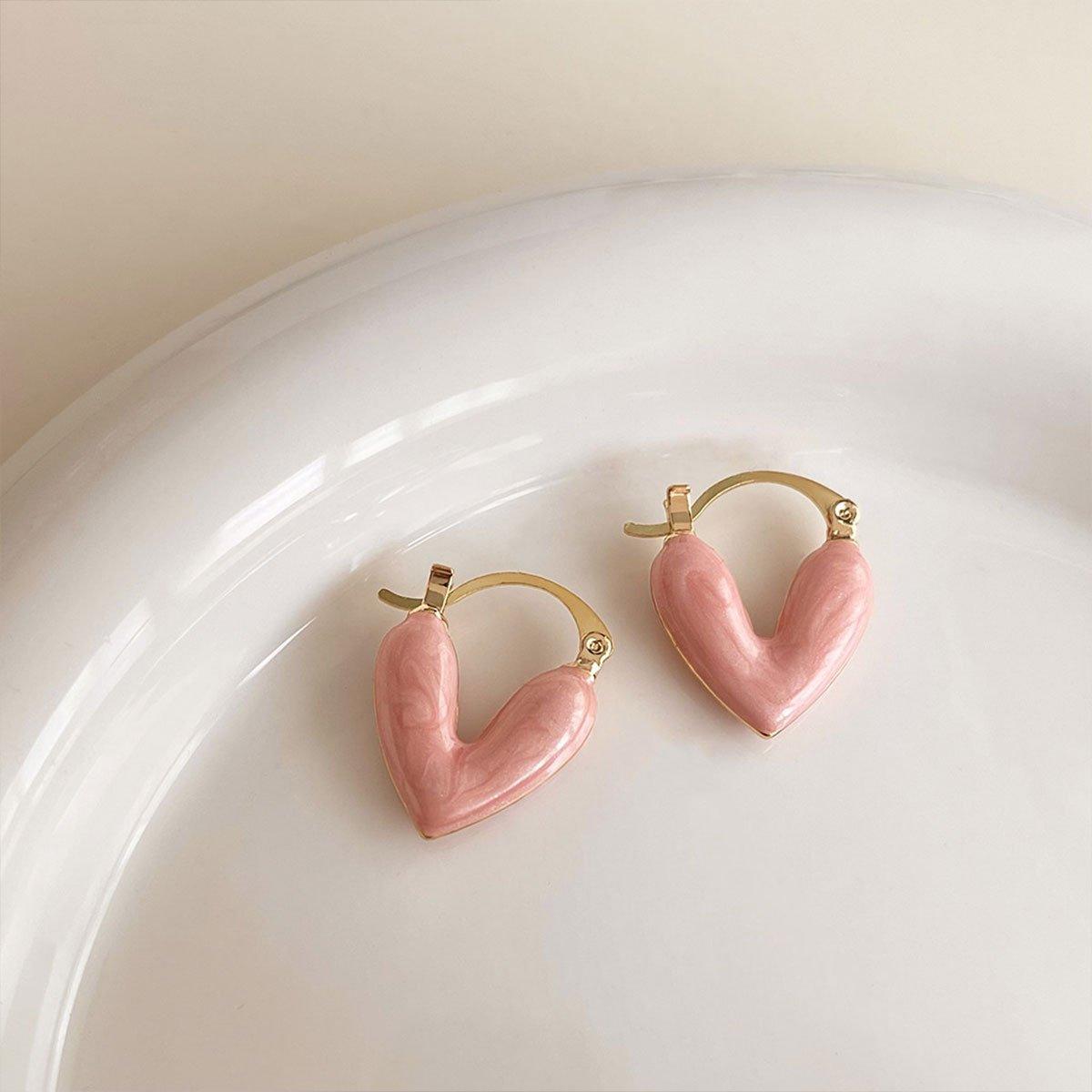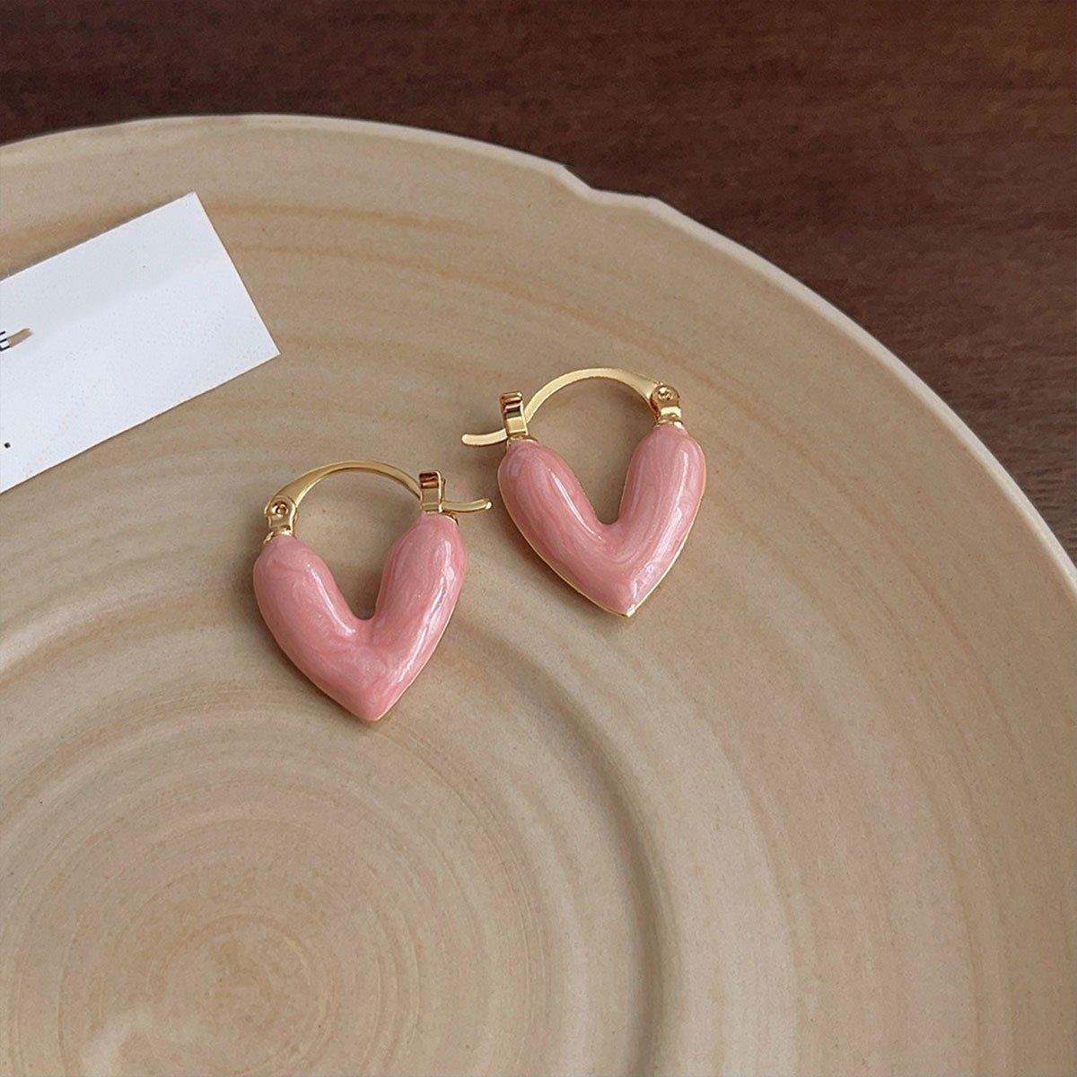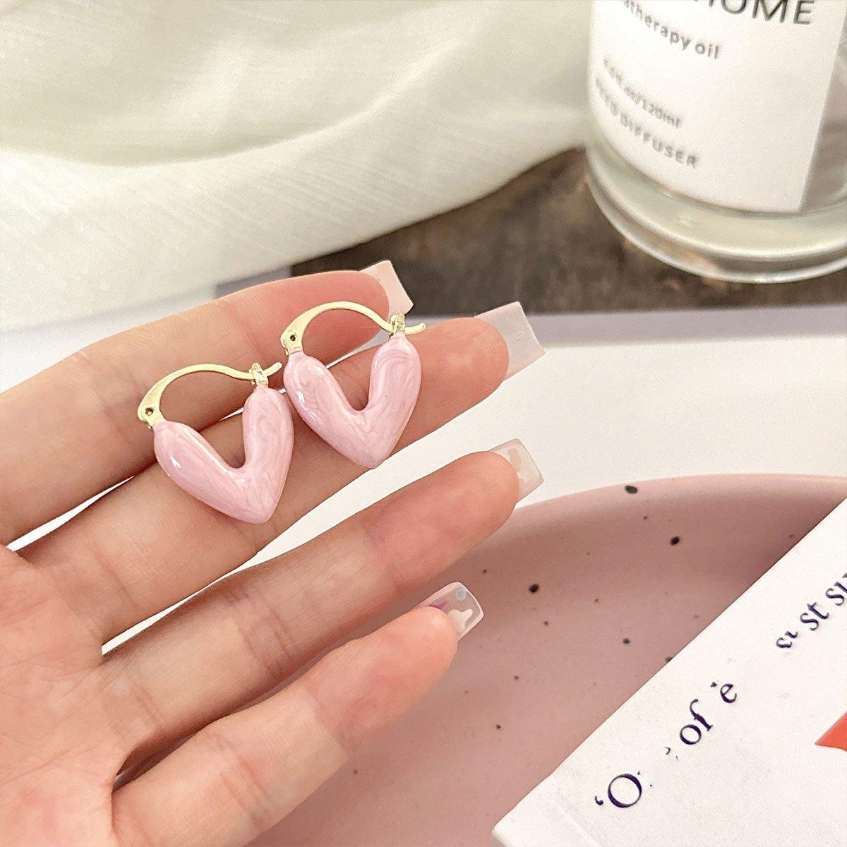 Romantic Pink Dripping Heart Dangle Earrings Women Girls Fashion Jewelry