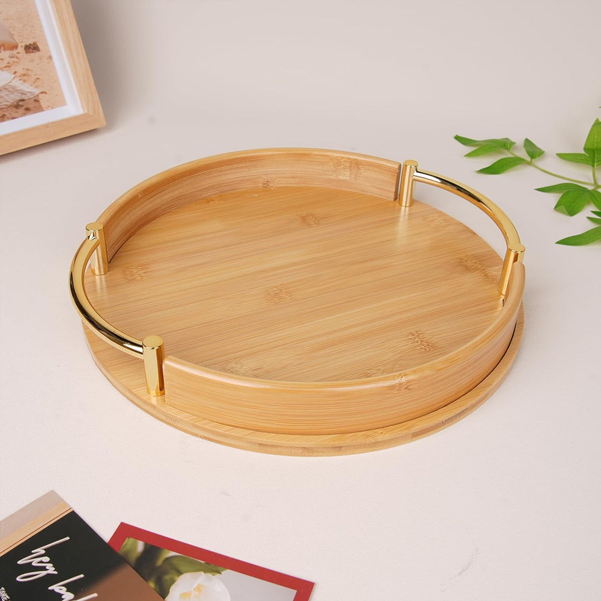 Round Bamboo Tray Durable for Home Kitchen Restaurant Serving Tea Food Snacks