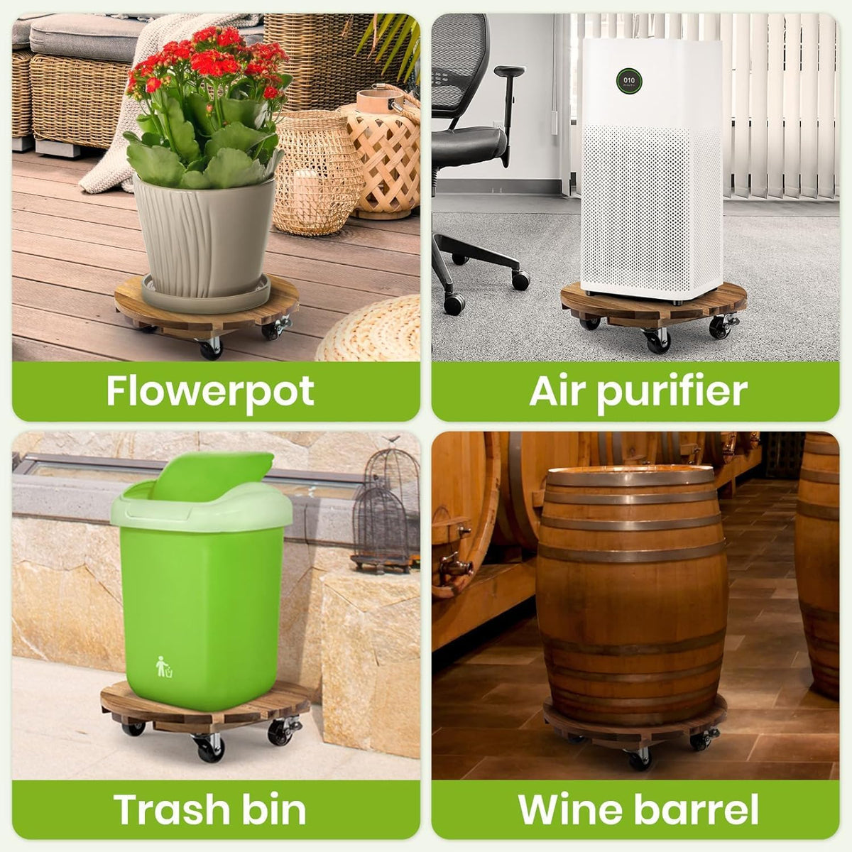 Round Swivel Caster Wooden Planter Stand Plant Pot Base for Plant Moving
