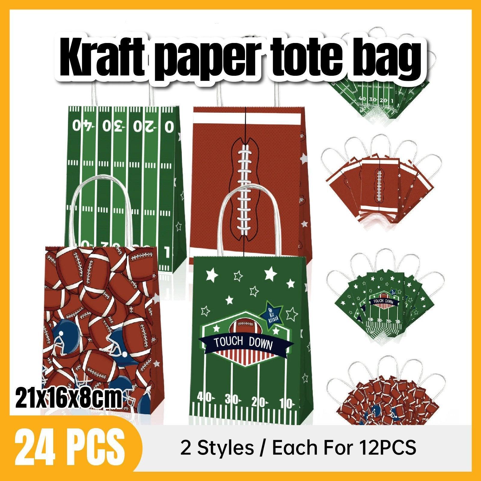 Rugby Themed Kraft Paper Tote Bags Durable 150g Kraft Paper for Sports Fans