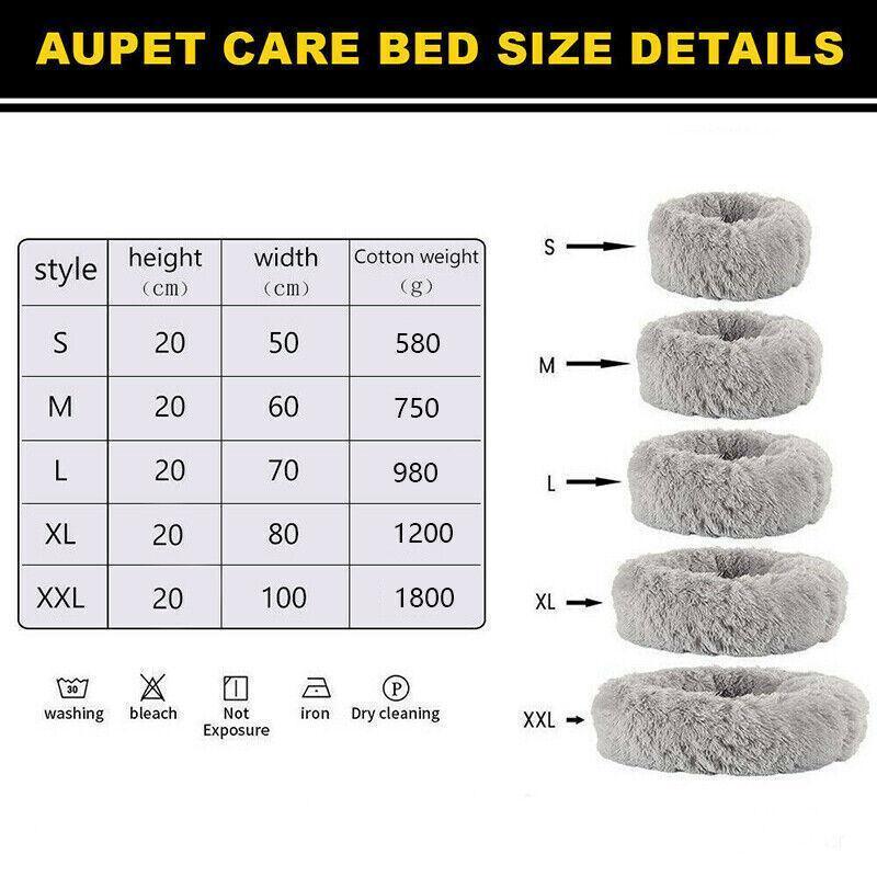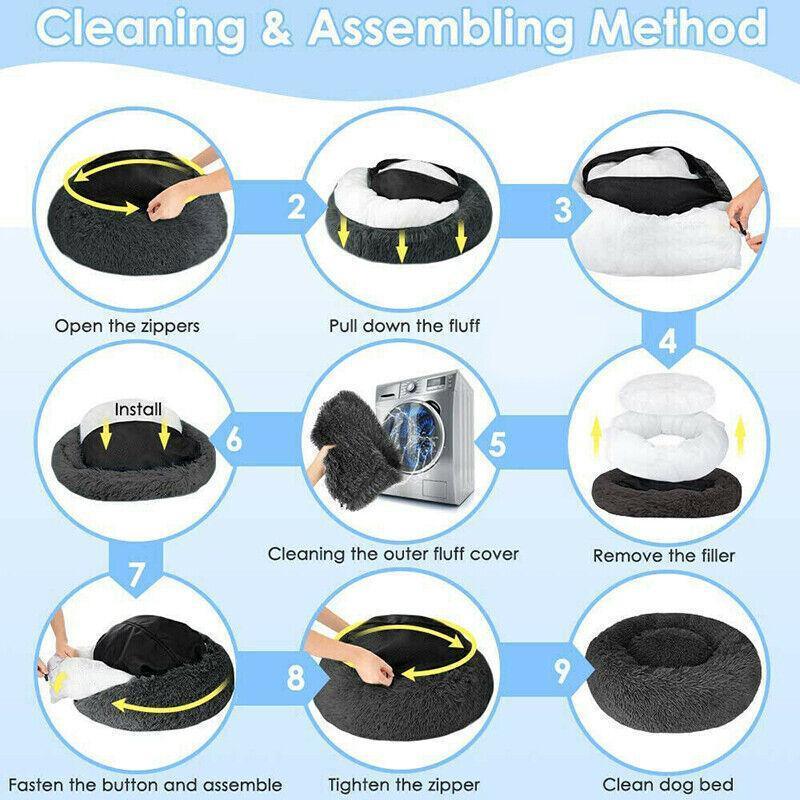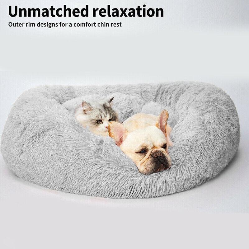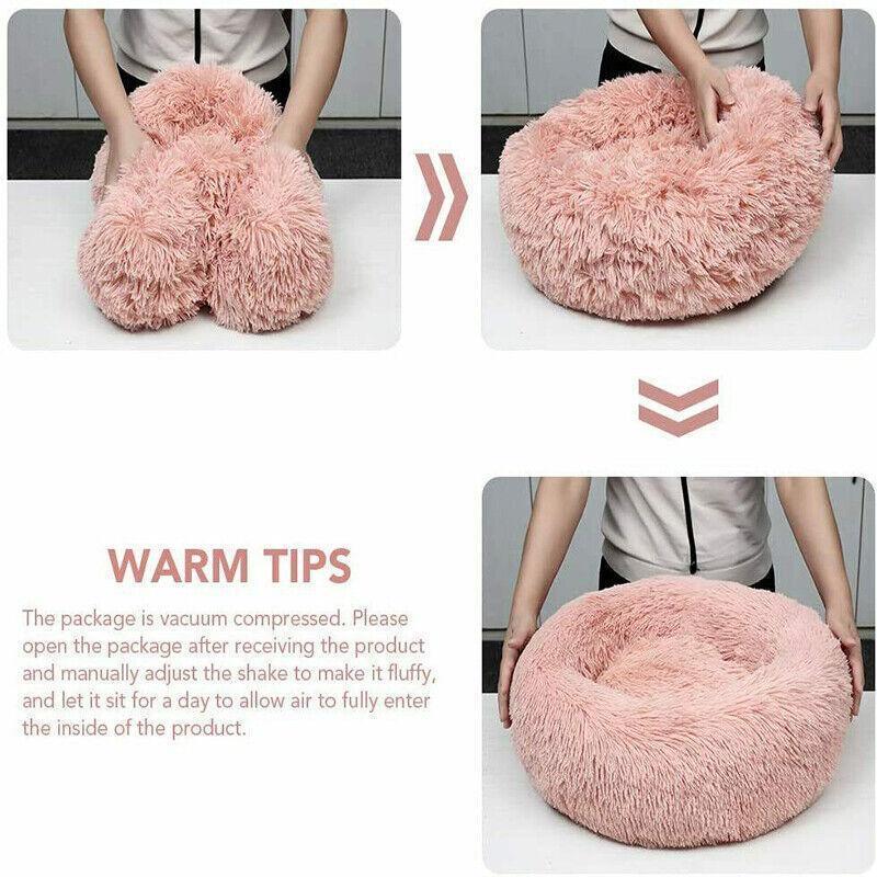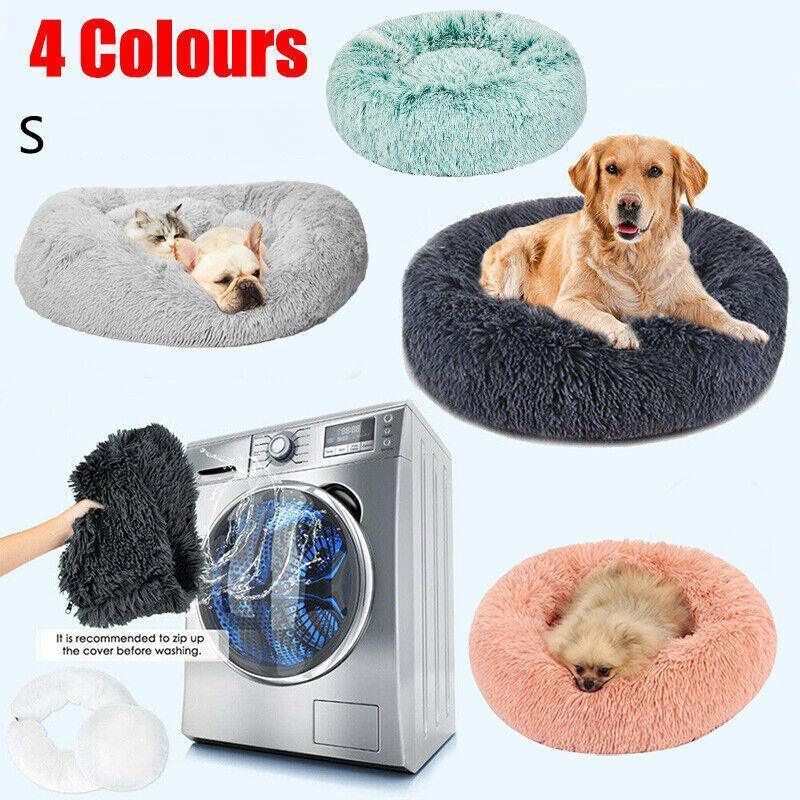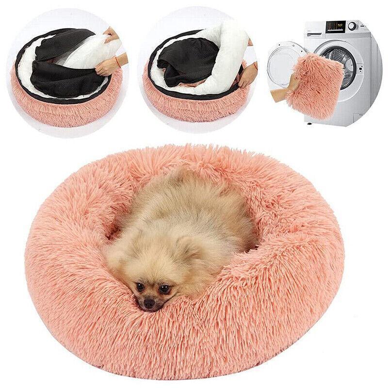S-50CM Dog Cat Calming Bed Washable ZIPPER Cover Warm Soft Plush Round Sleeping