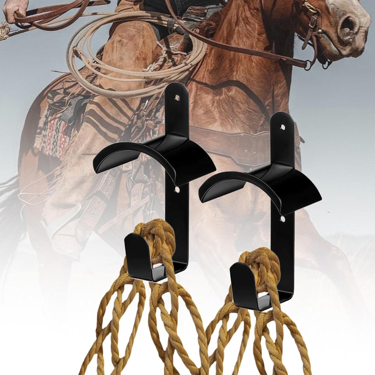 Saddle Rack Wall Mounted Harness Holder Stable Hook 2pcs Heavy Duty Black Metal