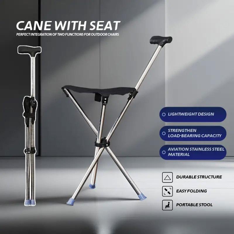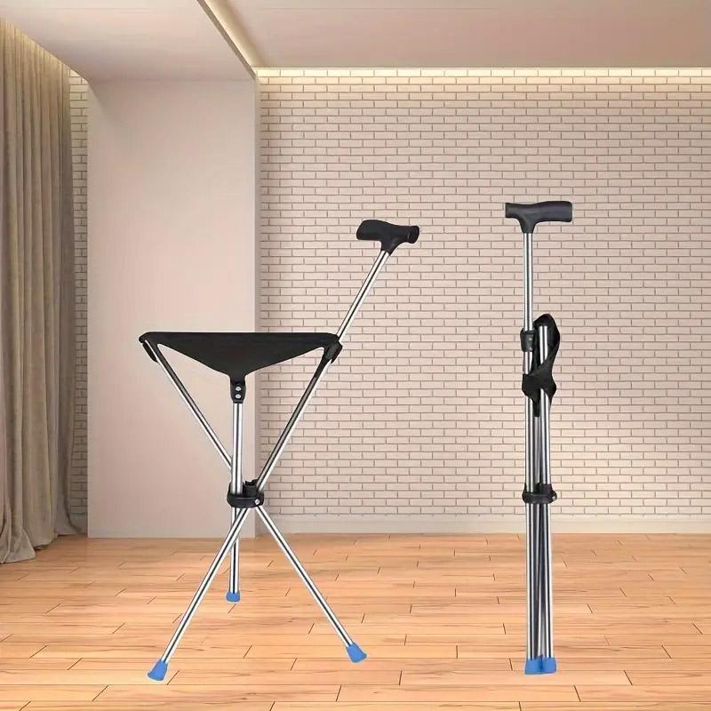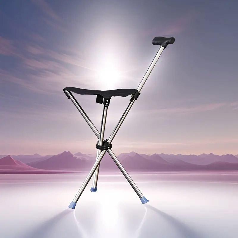 Stainless Steel Walking Stick with Seat Folding Cane Chair for Travel and Outdoor Use