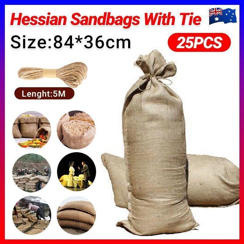 Sand Bag Flood Protection 84X36Cm Pk25 Control Hessian Sandbags With Tie