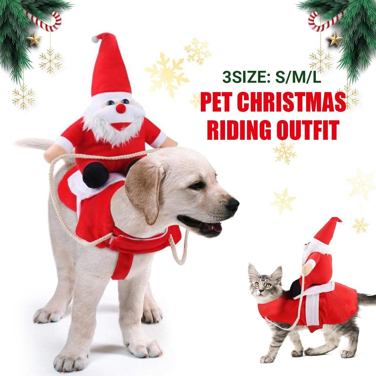 Santa Claus Pet Costume Dog Cat Funny Riding Suit Christmas Holiday Outfit Wear