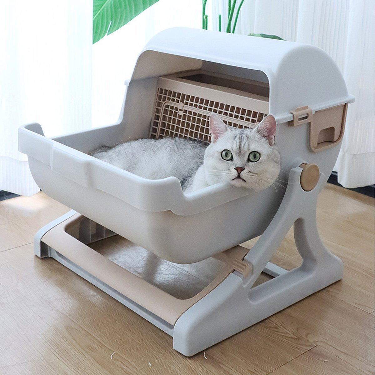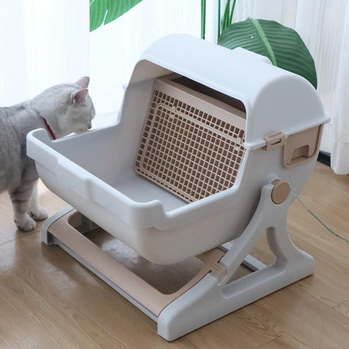Semi Automatic Cat Litter Box Large Anti Splash Semi Enclosed Kitty Toilet