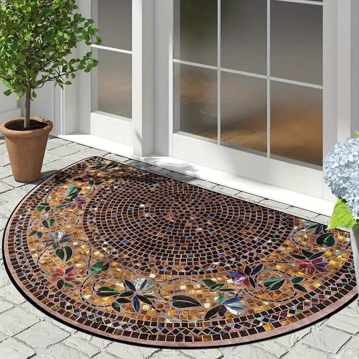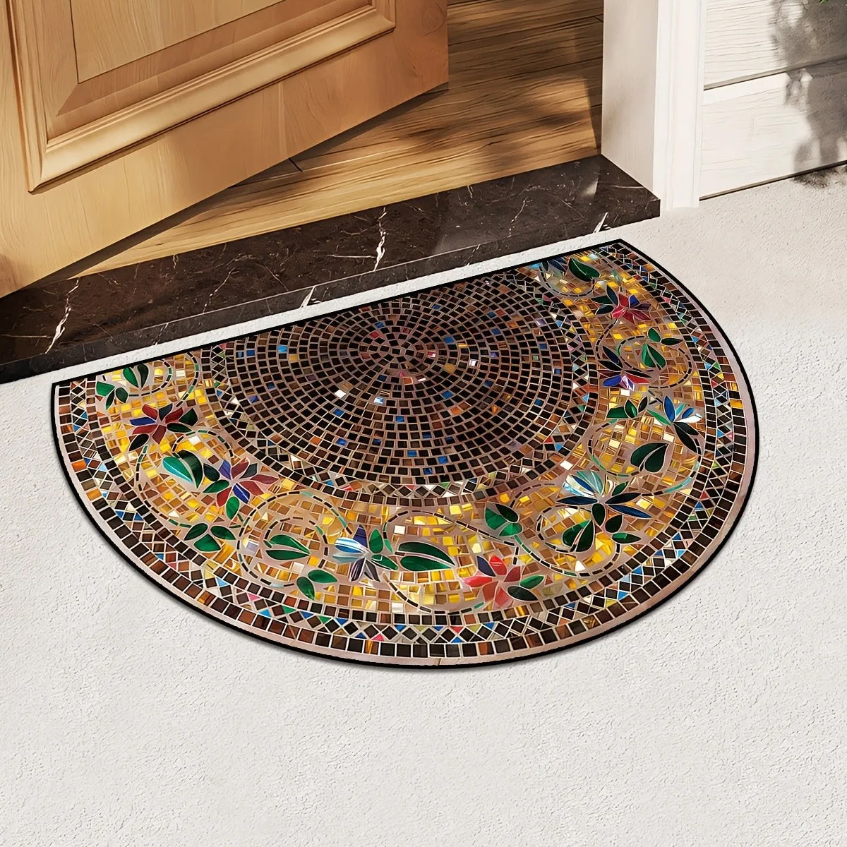 Semicircular Retro Stone Pattern Door Mat Dustproof Anti slip Entrance Carpet