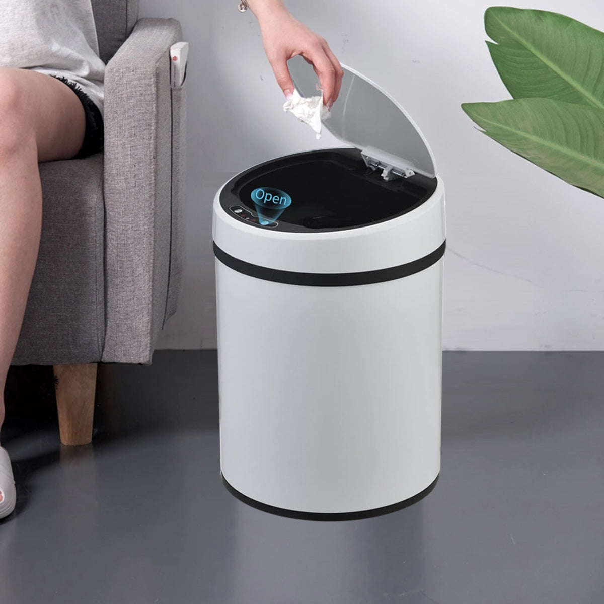 Sensor Trash Bin 12L Automatic Motion Rubbish Can White for Kitchen Home Use