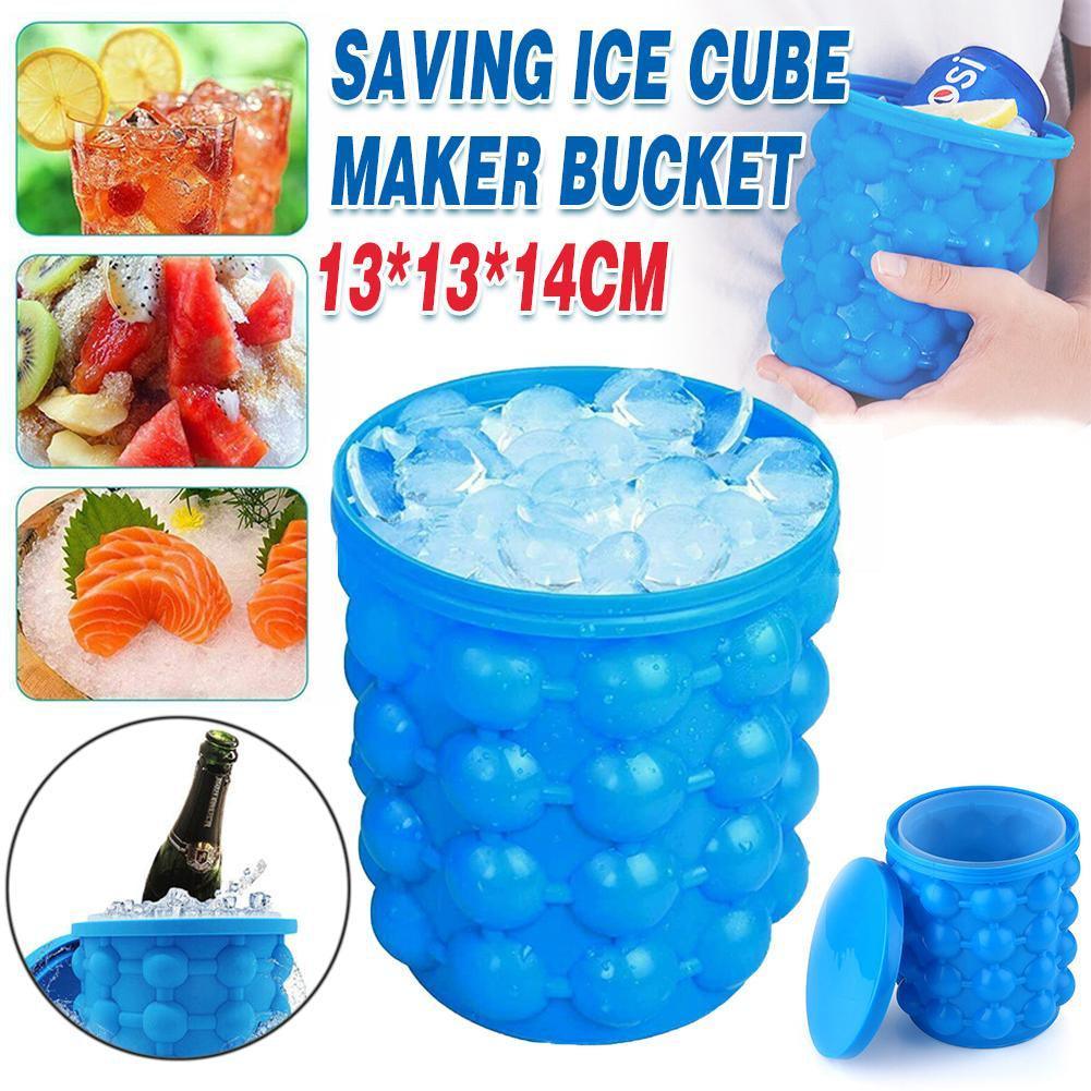 Space Saving Ice Cube Bucket with Lid Reusable Ice Maker for Freezer 13x13x14cm