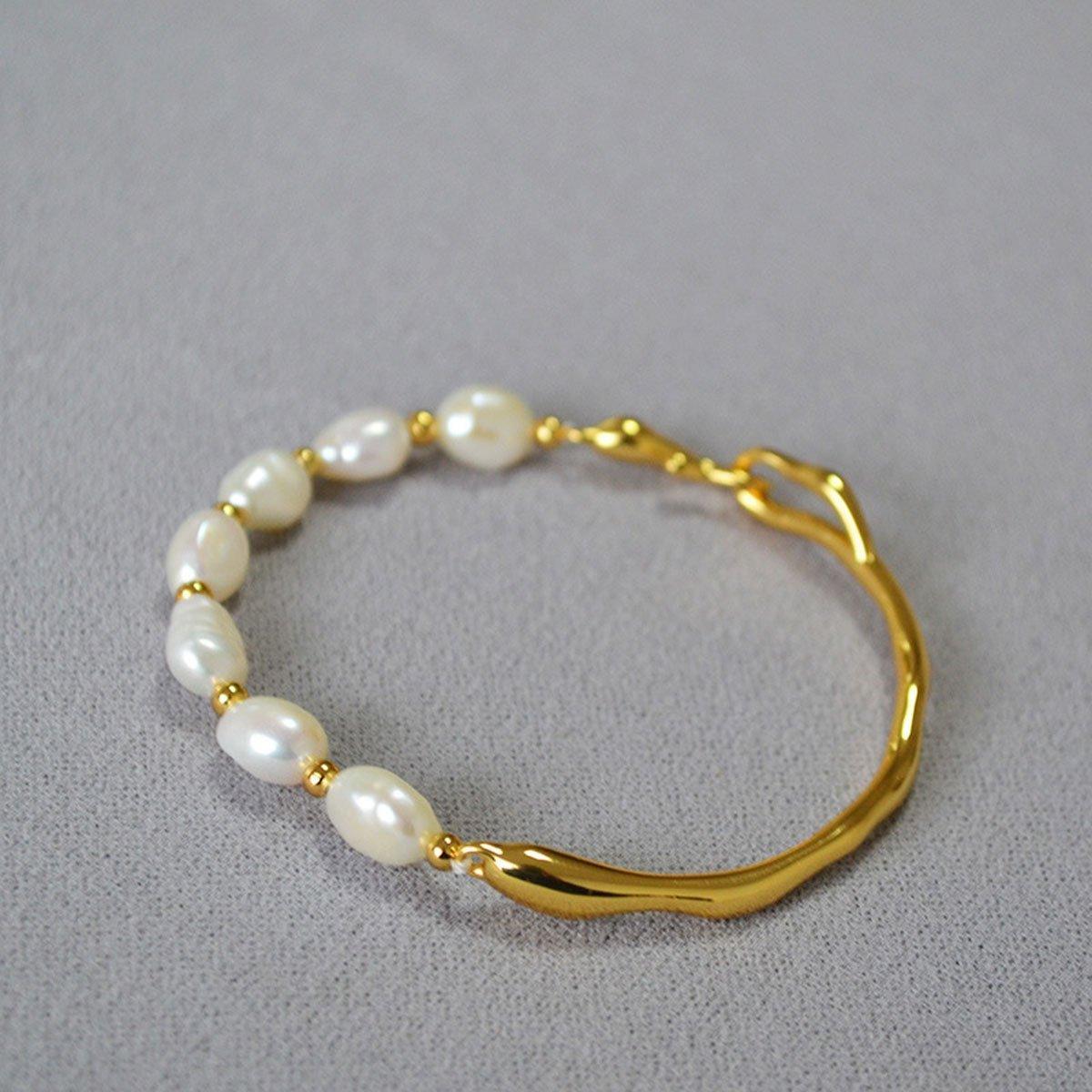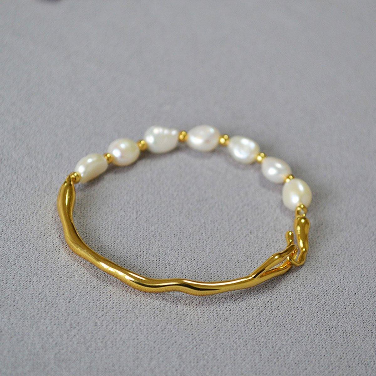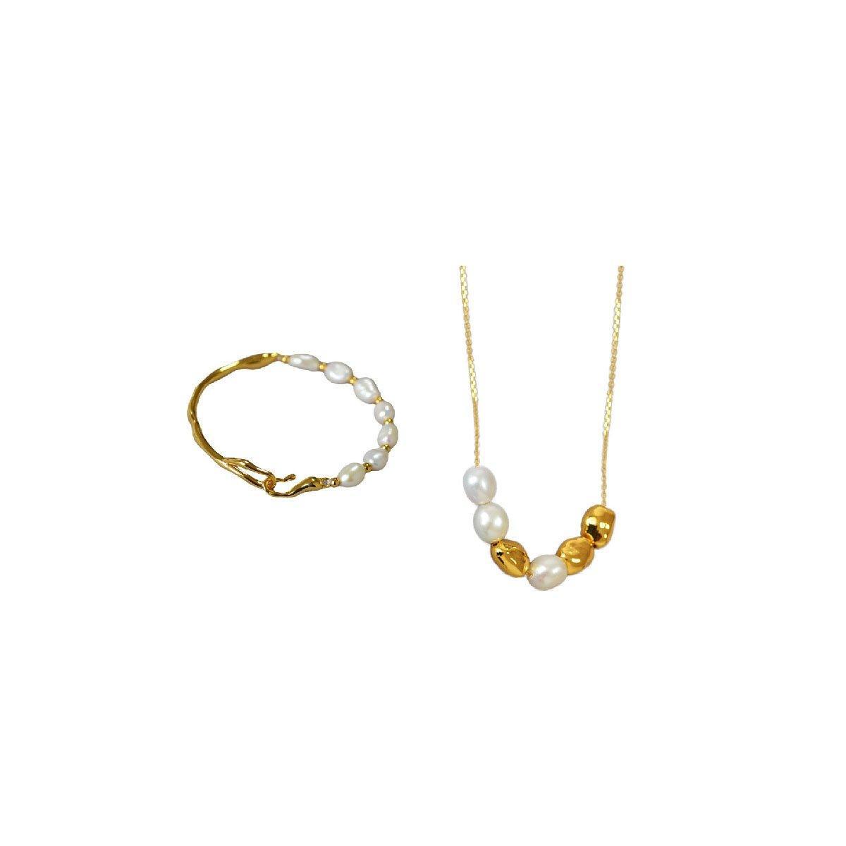 Simple Irregular Freshwater Pearl Necklace and Bracelet Set Elegant Women