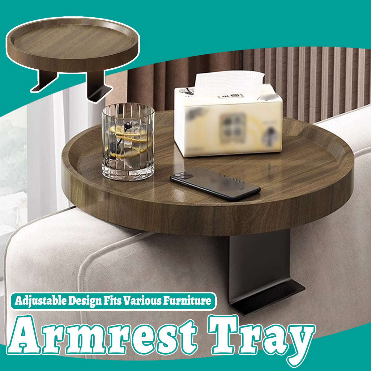 Simple Sofa Armrest Tray Adjustable Non Slip for Coffee Fruit Phone Snacks