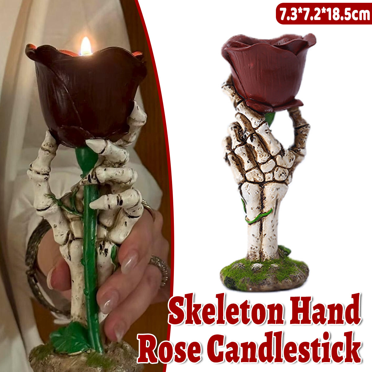 Skeleton Hand Rose Candle Holder Decoration Gothic Style Durable Resin Halloween
