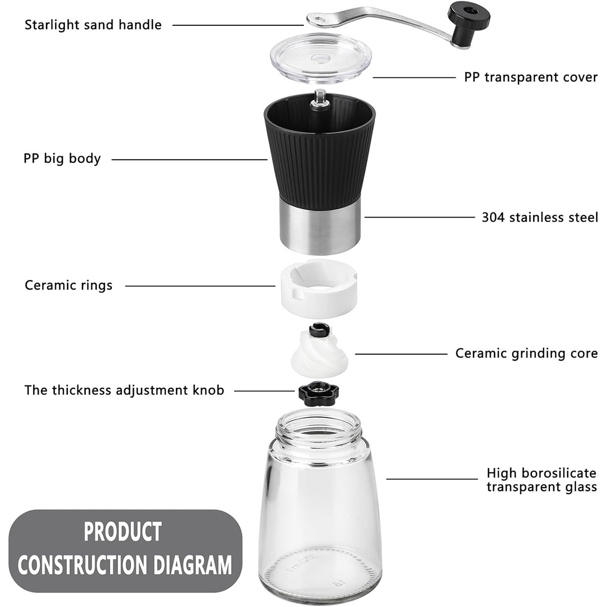 Small Manual Coffee Grinder Beans Nuts Adjustable Conical Ceramic Burr Spice
