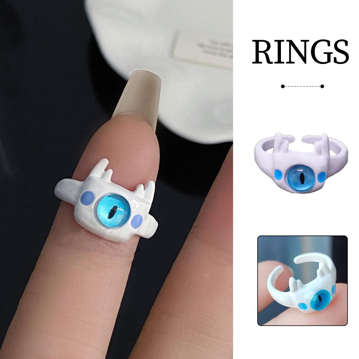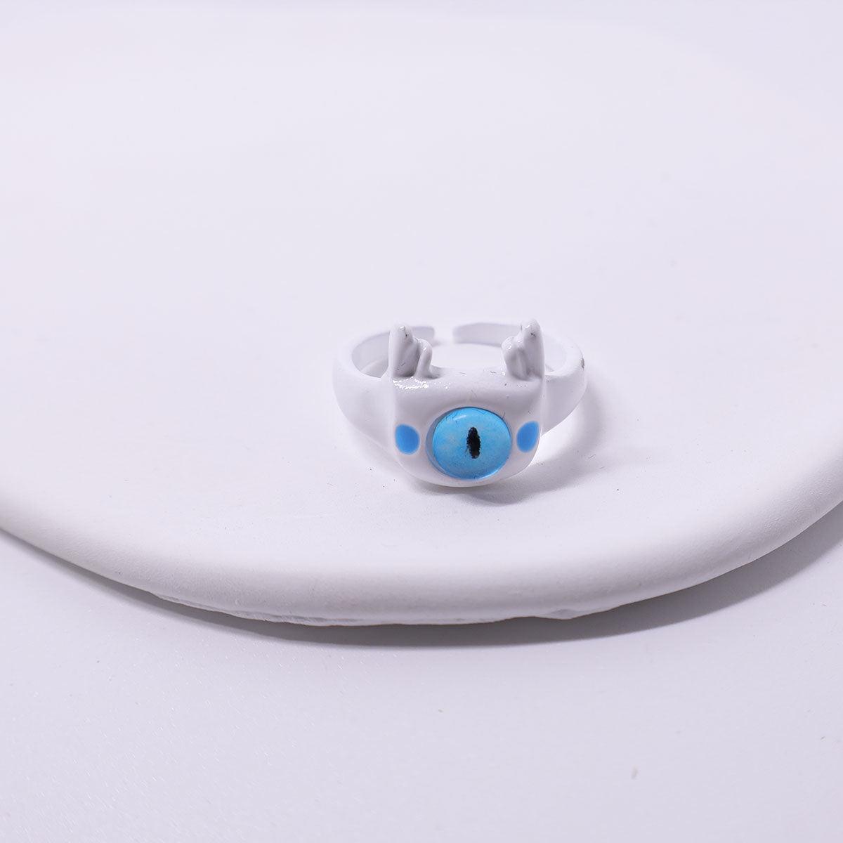 Small Monster Open Ring Cute Kitty Cat Monster Cyber Celebrous Sweet Ring Funny Devil White