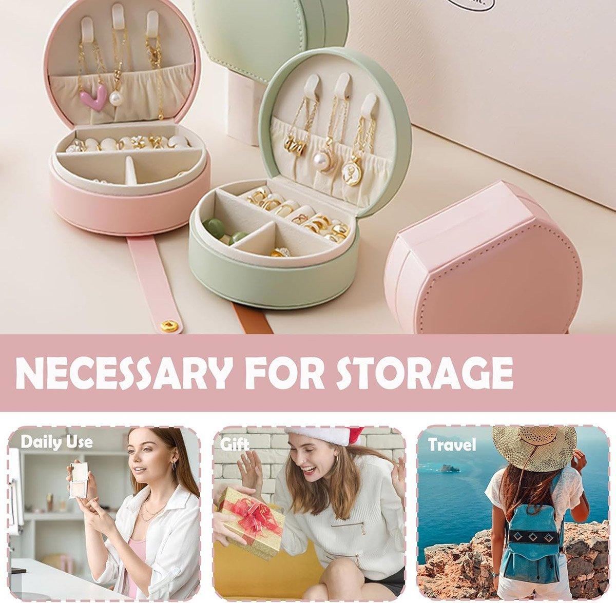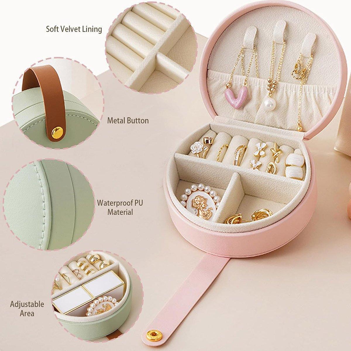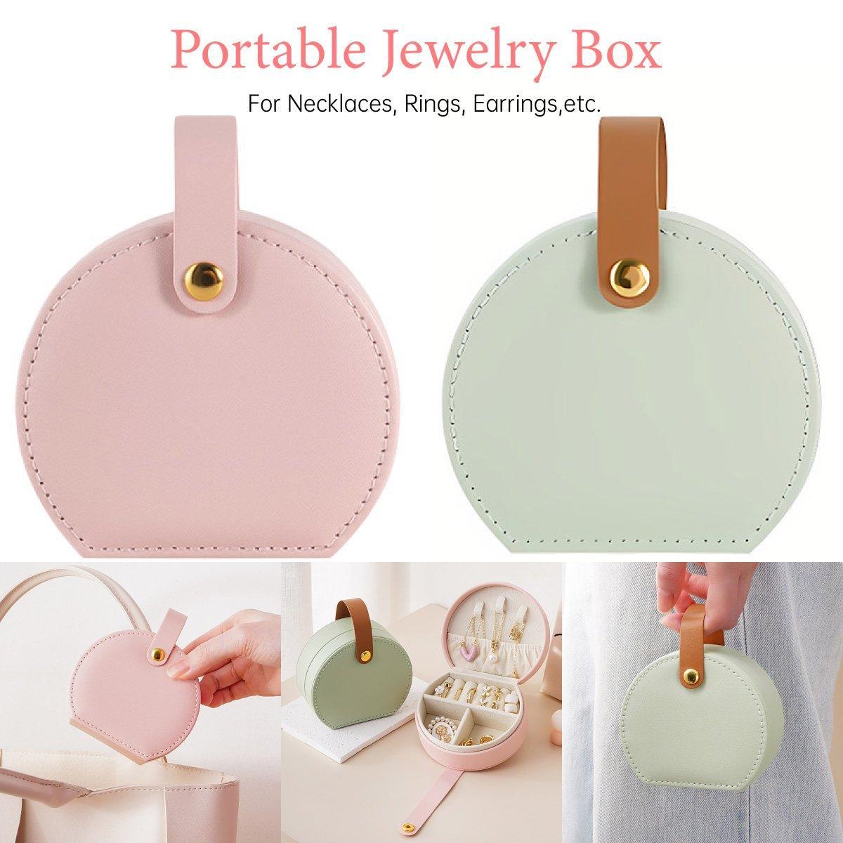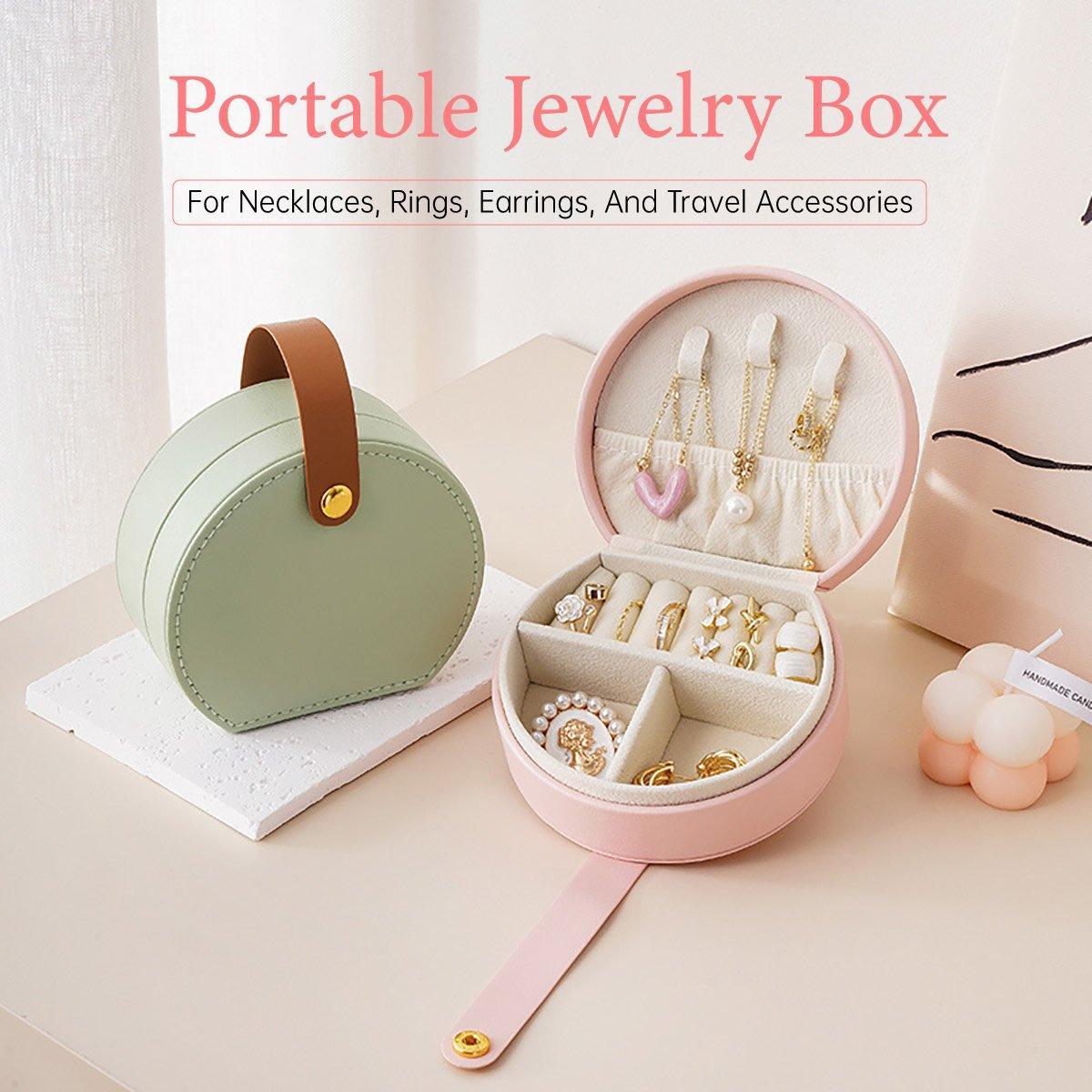Small Portable Leather Jewelry Box Travel Case for Necklace Ring Earring Storage