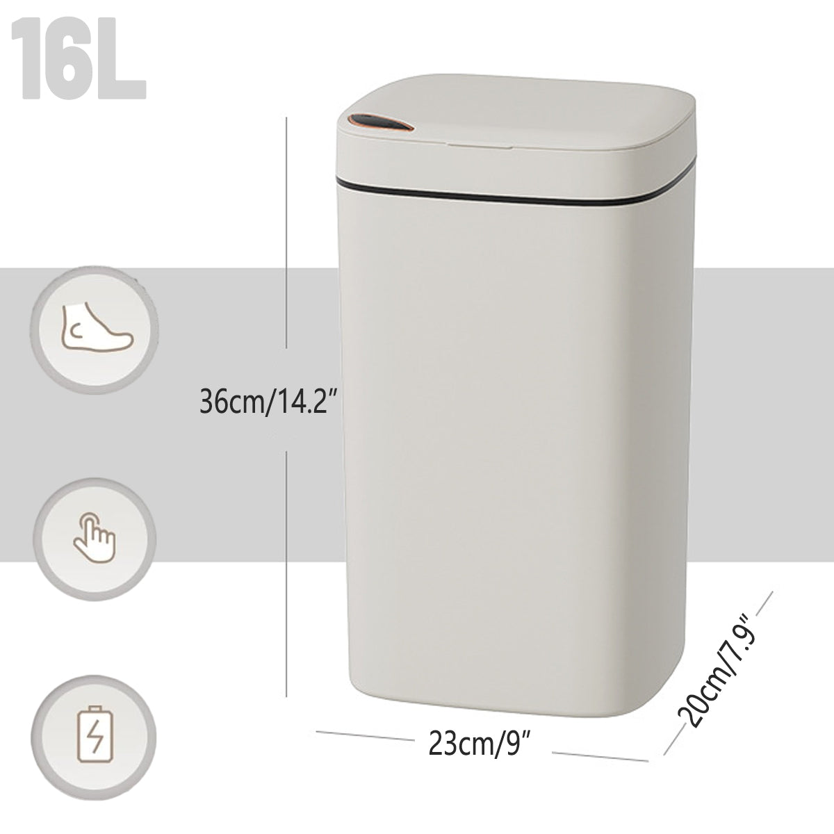 Smart Garbage Can 16L Induction Trash Bin with Lid Large Capacity for Kitchen
