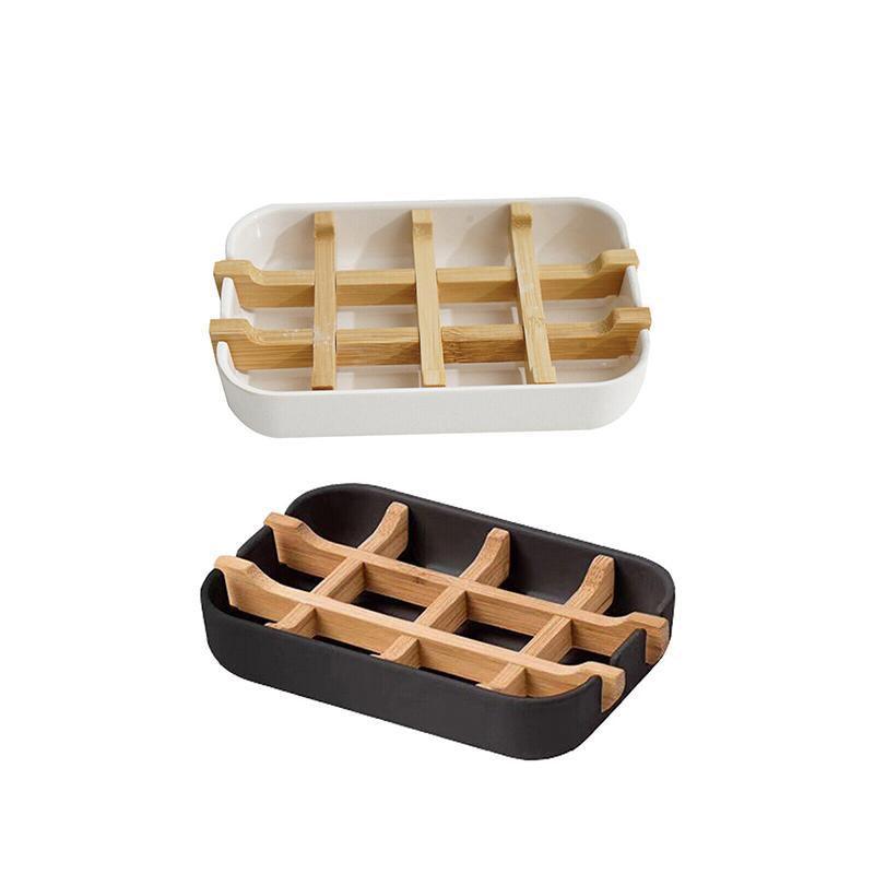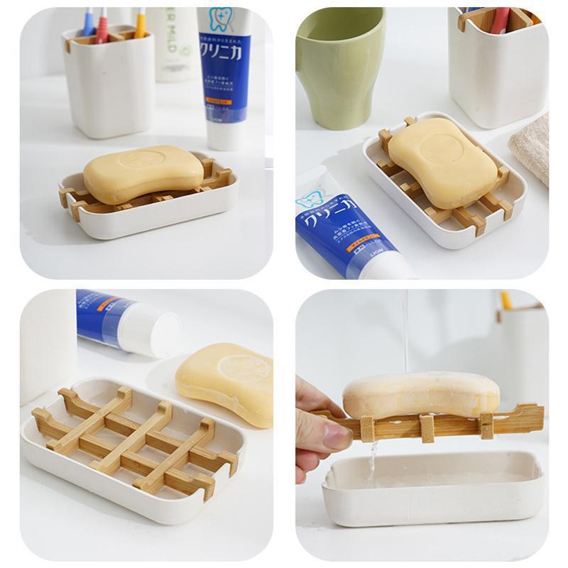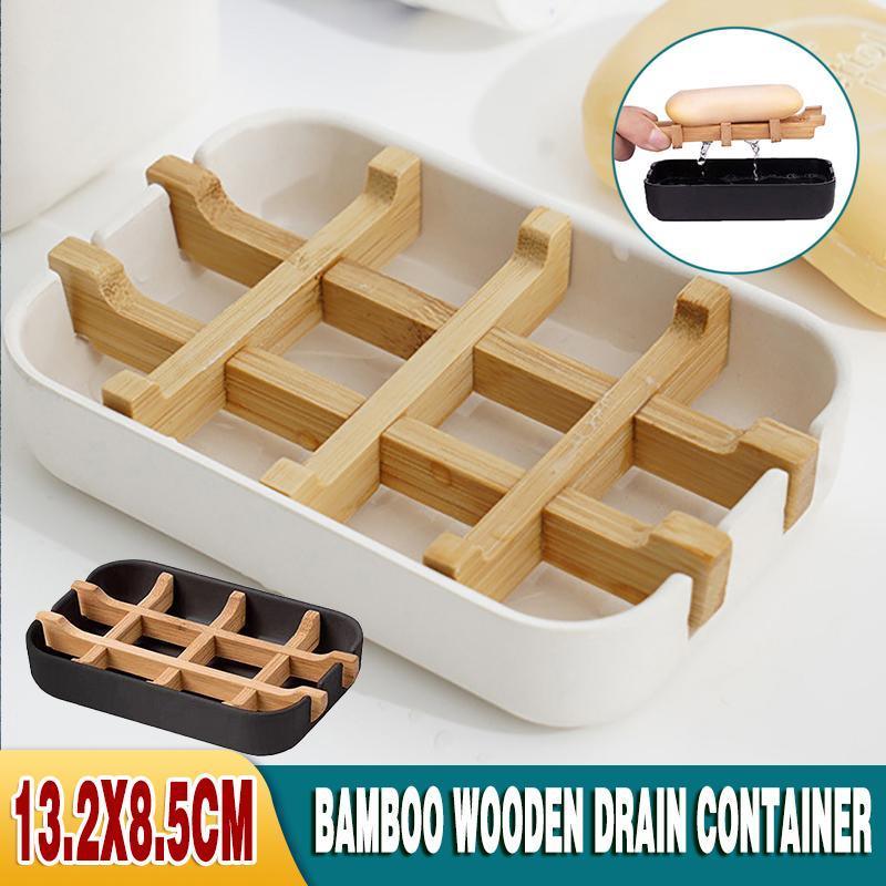 Soap Dish Bamboo Wooden Drain Container Bathroom Shower Soap Holder Case