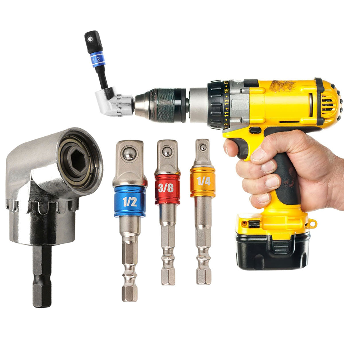Socket Adapter Set Hex Shank to 1/4in 3/8in 1/2in Impact Driver Drill 3pcs
