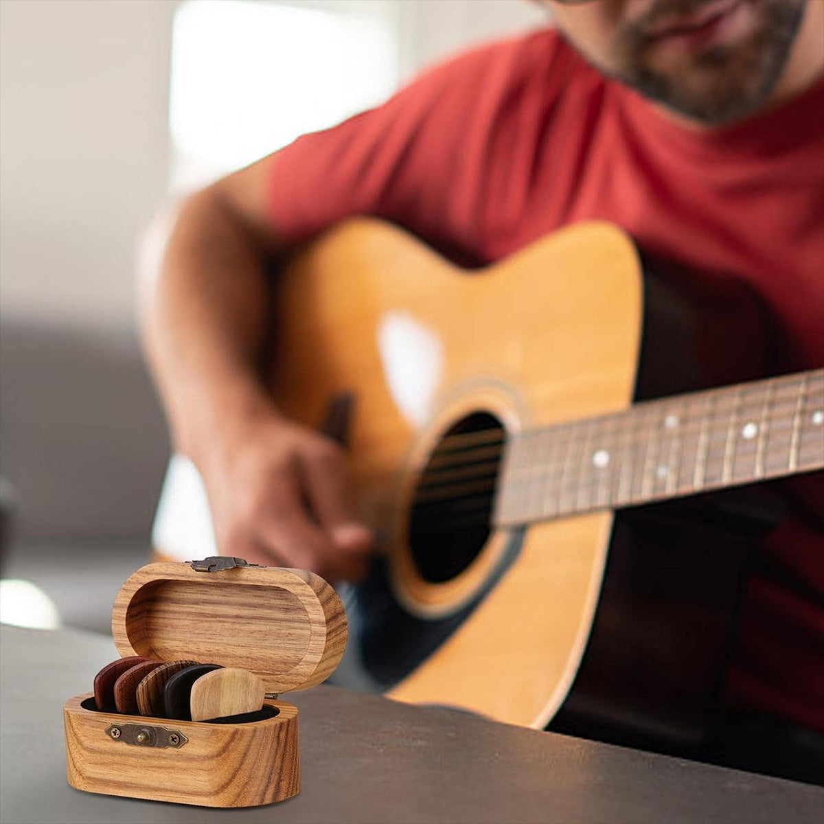 Solid Wood Guitar Pick Storage Case Moistureproof Durable Portable with Dividers