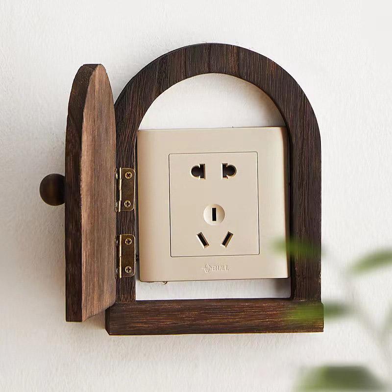 Solid Wood Wall Switch Protector Cover Socket Decorative Frame Masking Cover